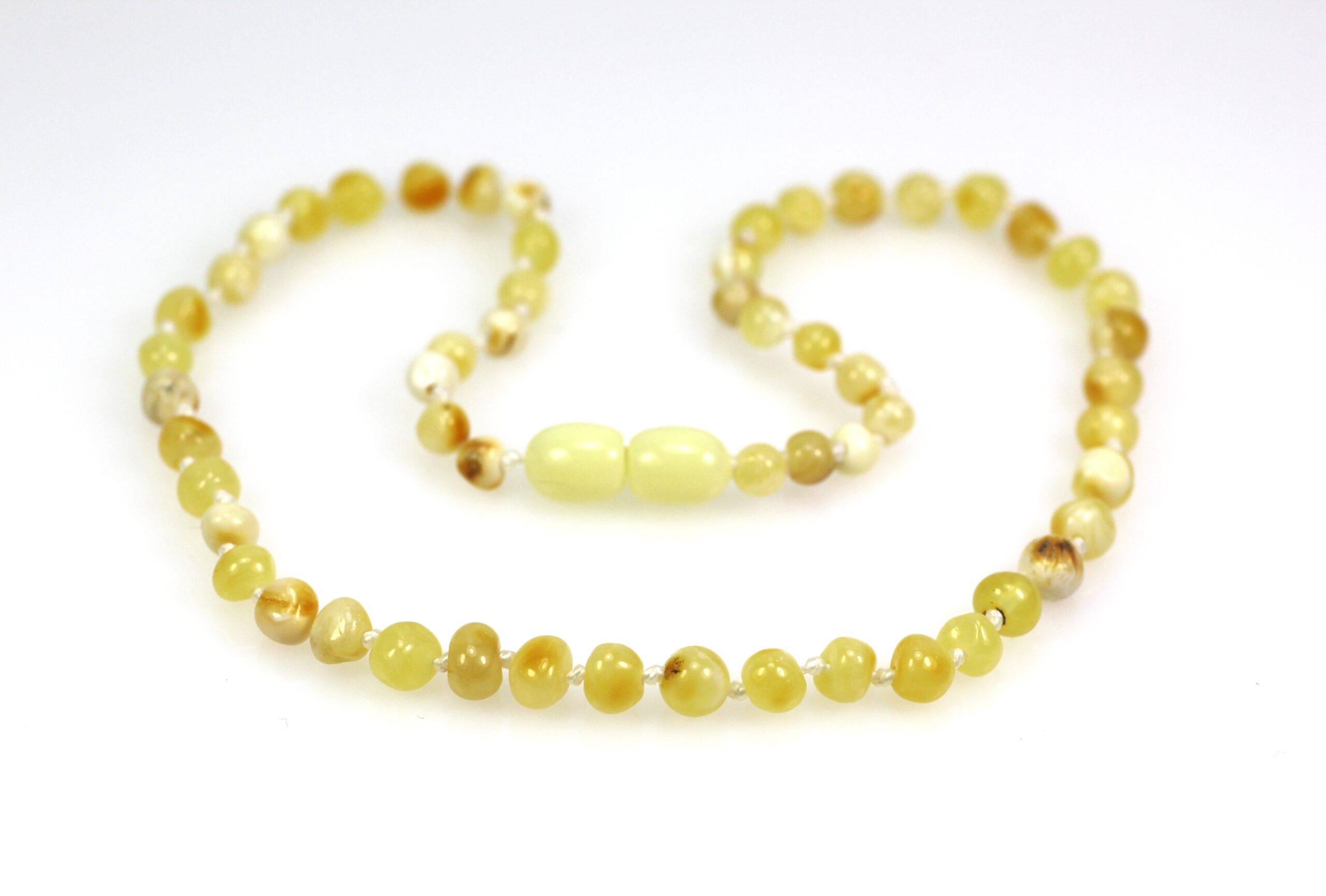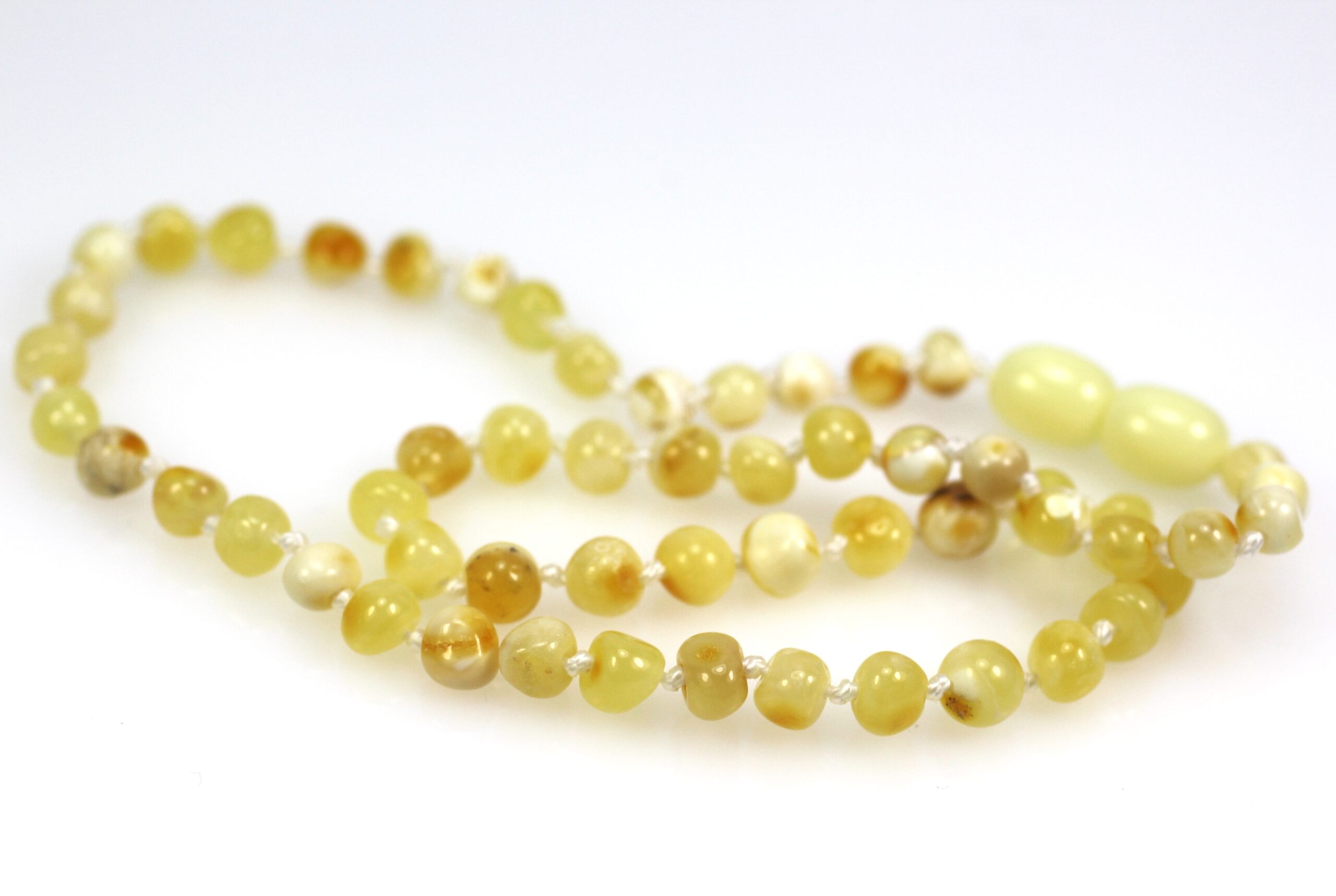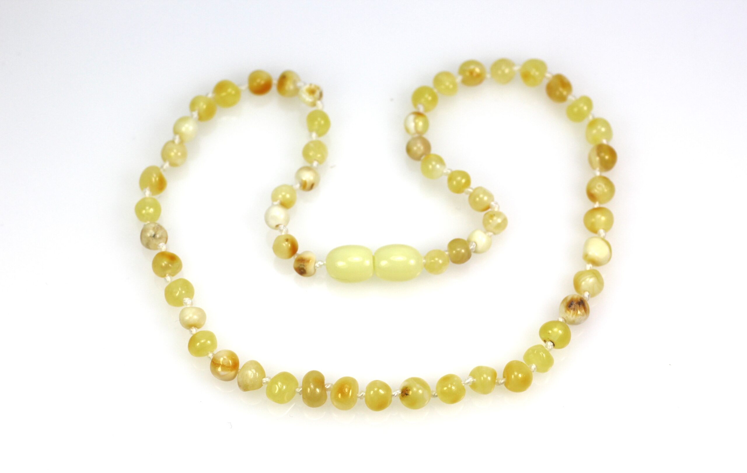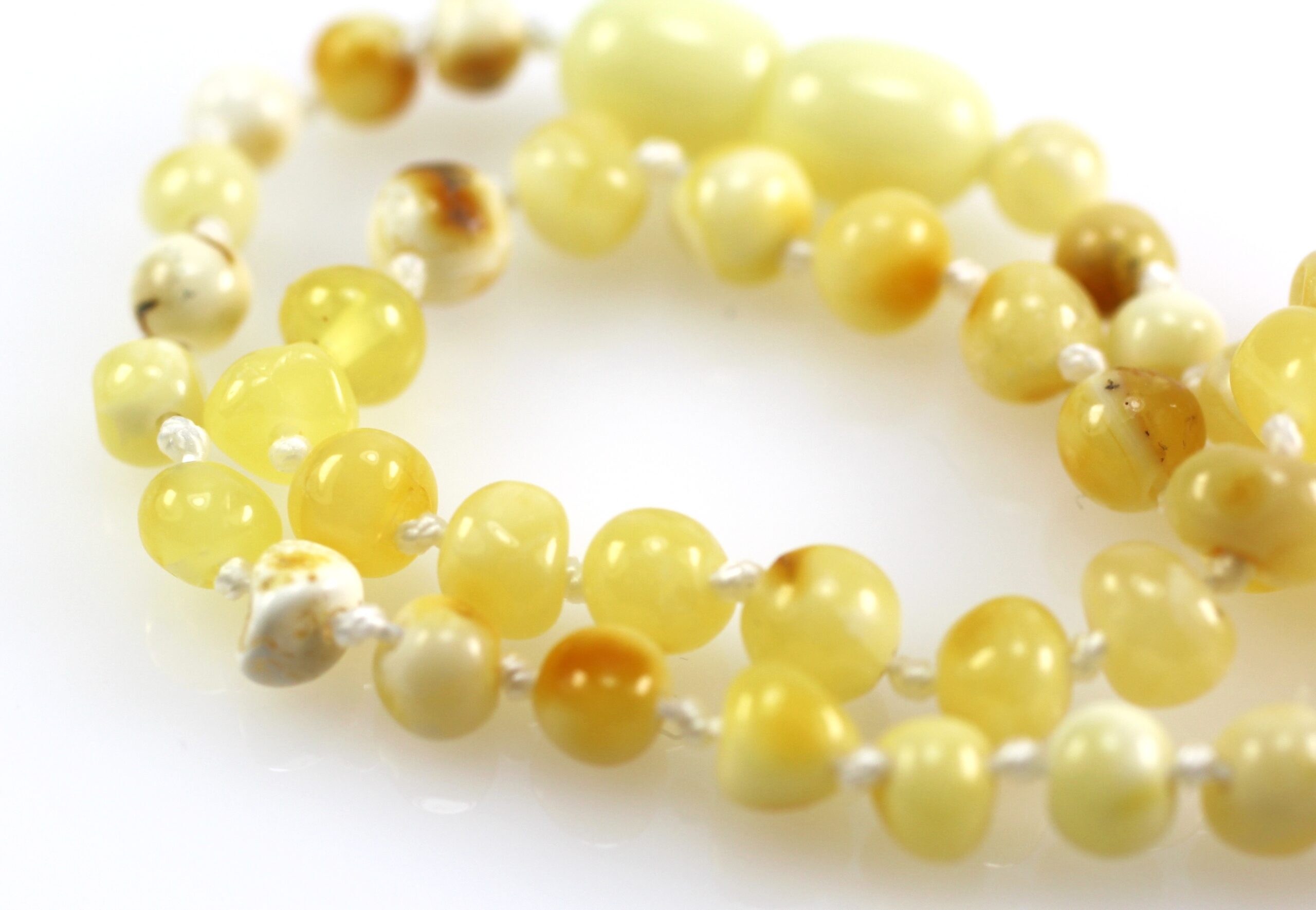 Children’s amber necklaces and bracelets – “Lithuanian Gold” – are not only suitable for wearing as jewellery, but also have healing properties. Our children’s amber beads have excellent therapeutic effects: relieve pain, improve blood circulation, calm the nervous system, have an anti-inflammatory effect. When the teeth erupt, it is very convenient for a child to “massage” the gums. To ensure the safety of a baby or a child, the beads are strung on a very strong polyester (popularly called capron) cord that withstands a lot of weight. Each amber bead is separated by a knot – this is for the safety of the child. In an unlikely event of the necklace breakage, the knots would prevent the beads from falling out all at once; in this case, only one bead would fall out. Necklaces and bracelets are suitable for both boys and girls.