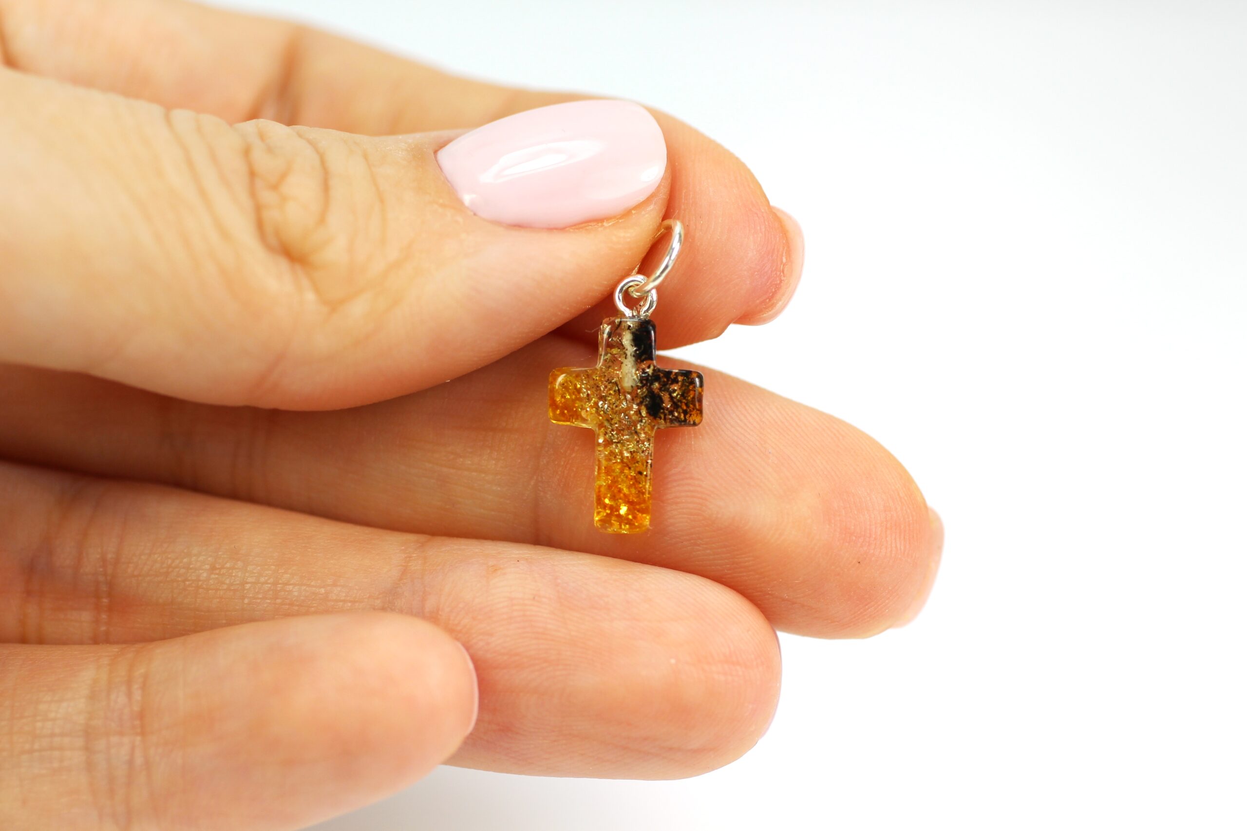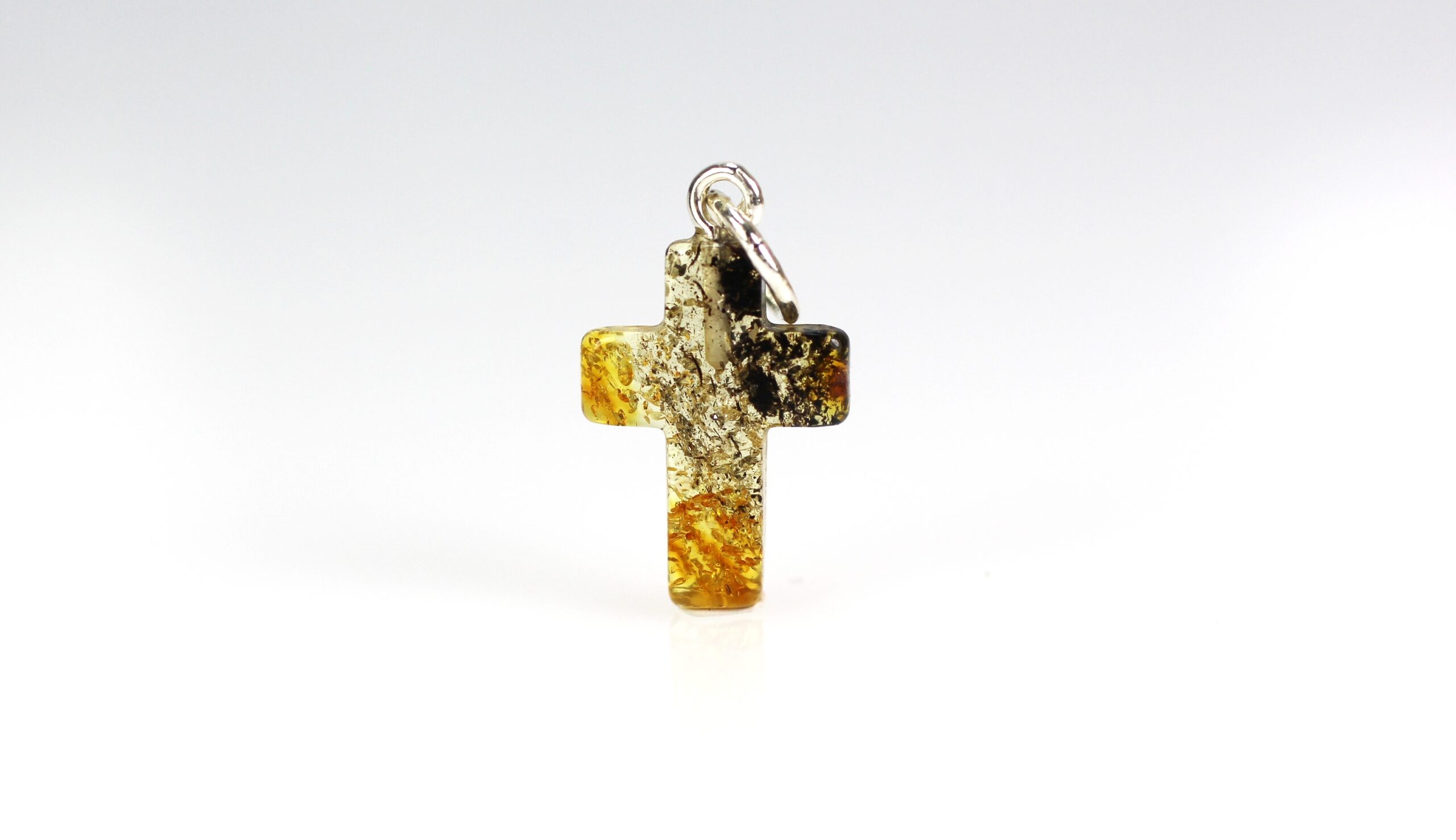 • Pendant is made of natural Baltic amber. Pendant is cross shape. Amazing greenish amber color. Hand made.