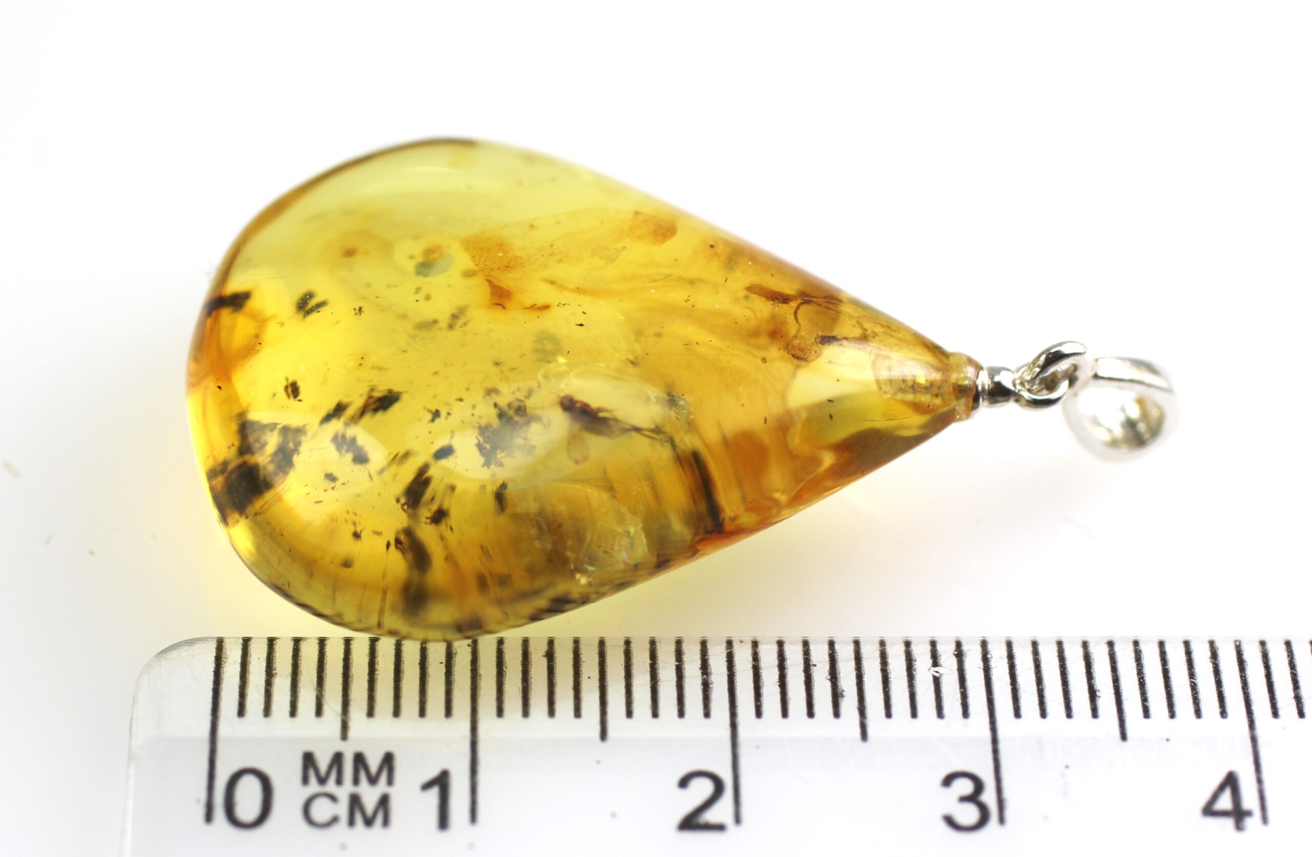 • Pendant is made of natural Baltic amber with fly inclusion. Amber pendant isn’t clear color, but inclusion is clearly visible.