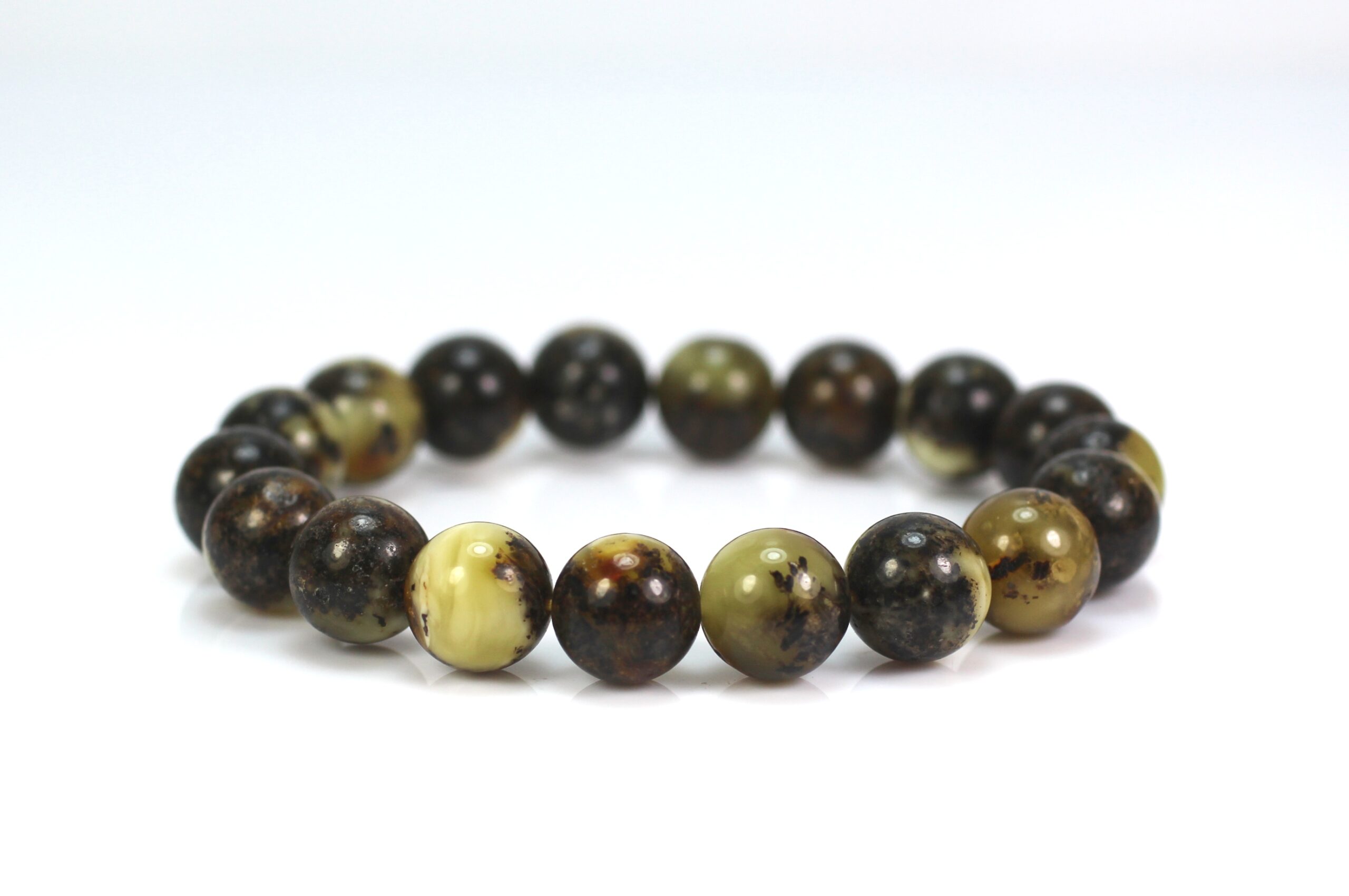Bracelet is made of natural Baltic amber. Perfect round beads, amazing greenish amber color. Amber beads are polished, so bracelet shiny and very beautiful.