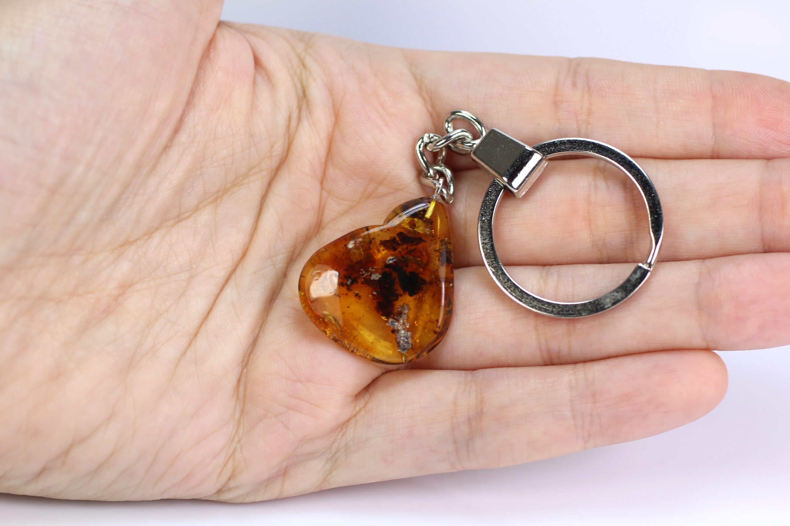 • Amber keychain is made of natural Baltic amber stone and stainless. Amber beads is handcrafted, unique and exclusive.