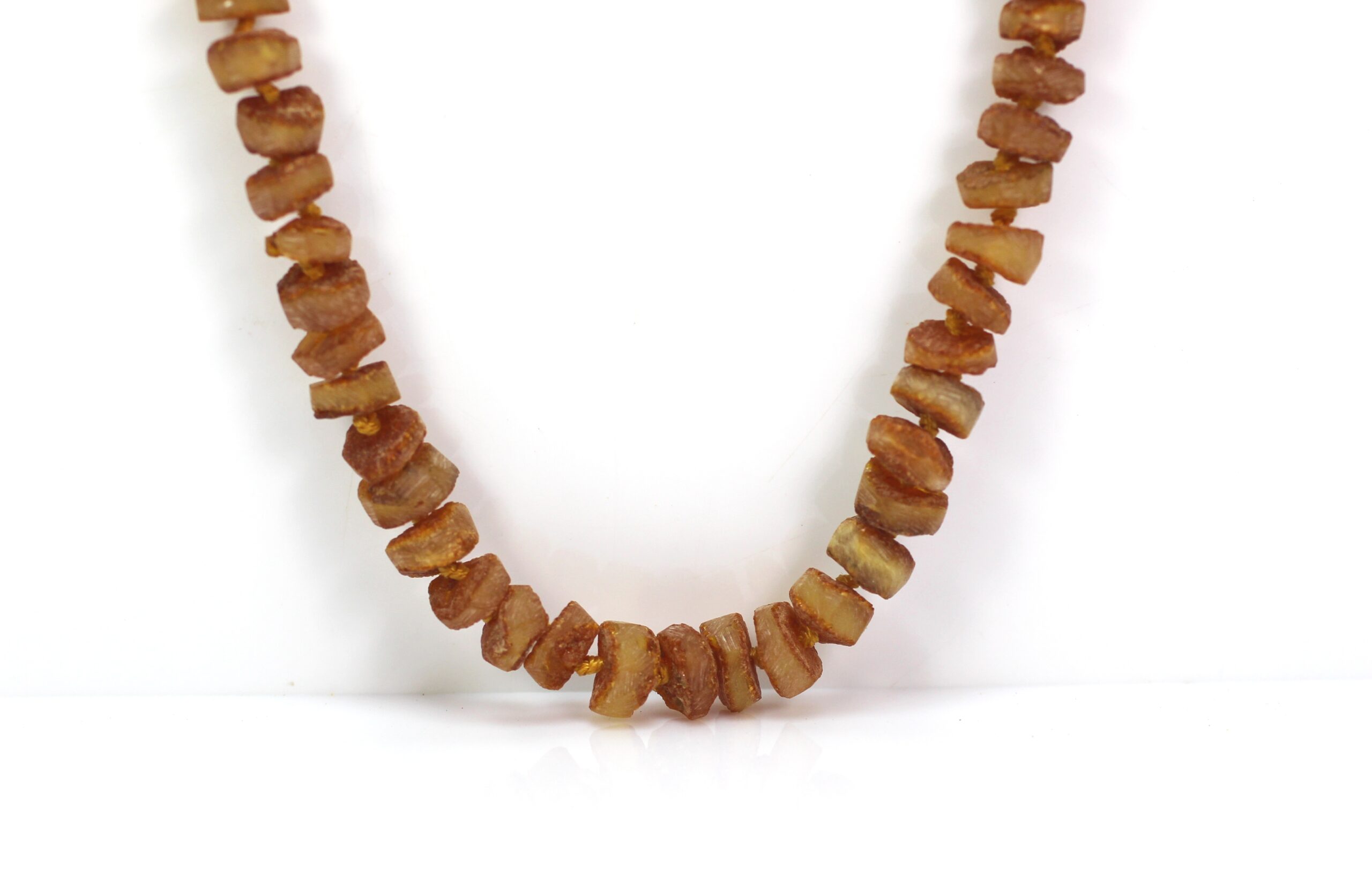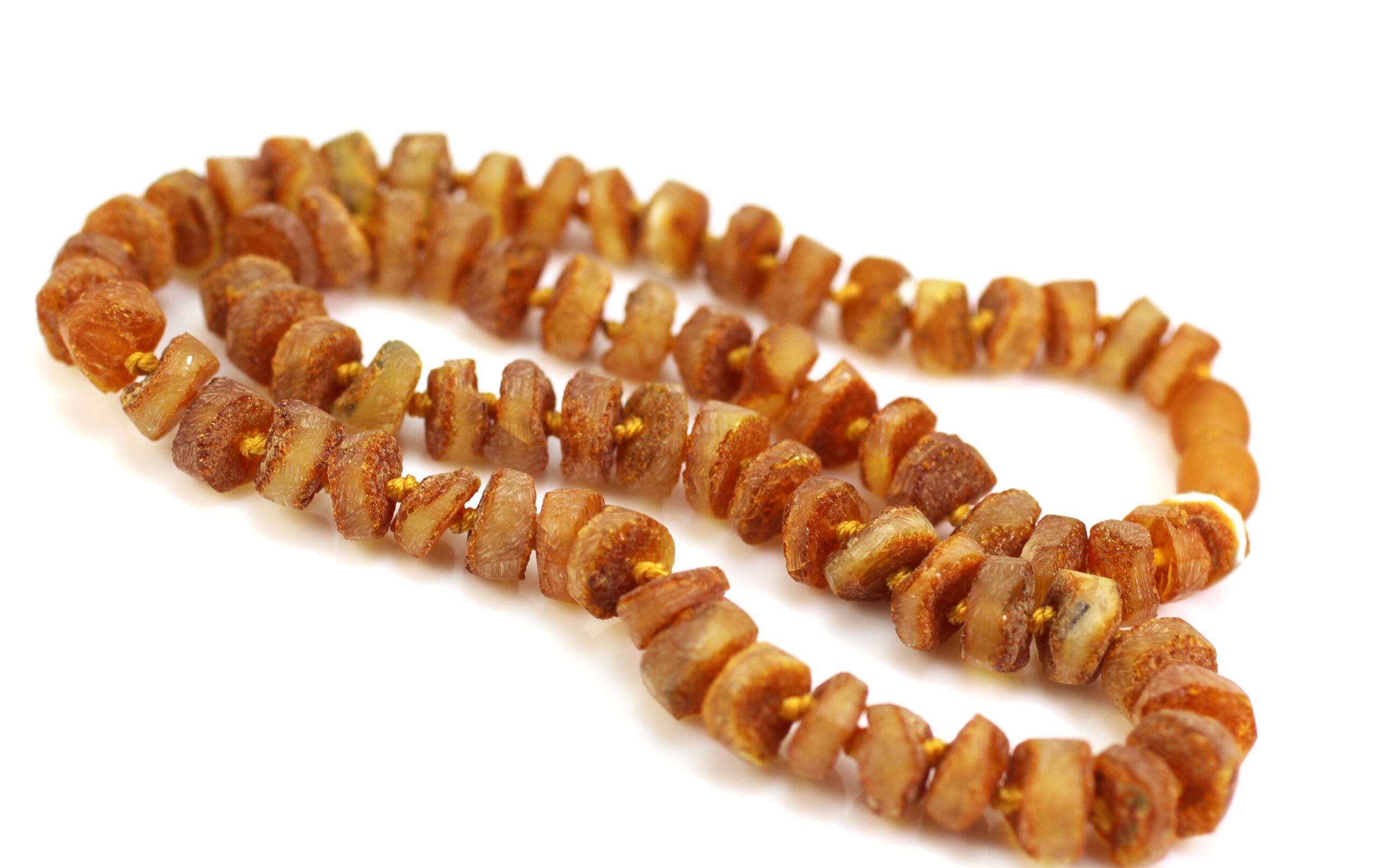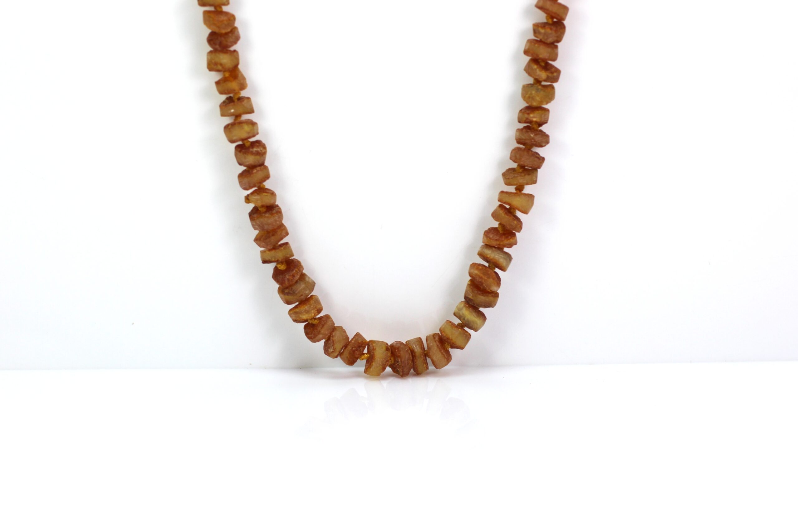 Baltic amber men necklace is made of natural Baltic amber. Cylindrical shape amber beads. Unpolished, brown amber color. Amazing and fashionable men amber necklace.
