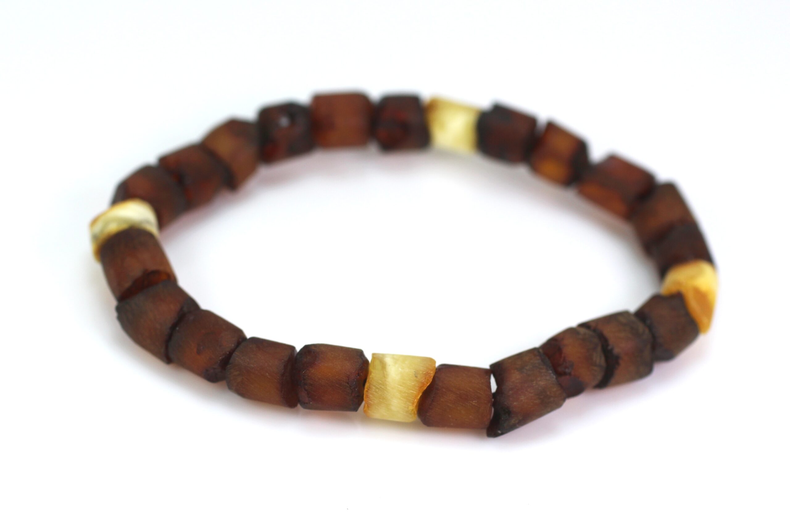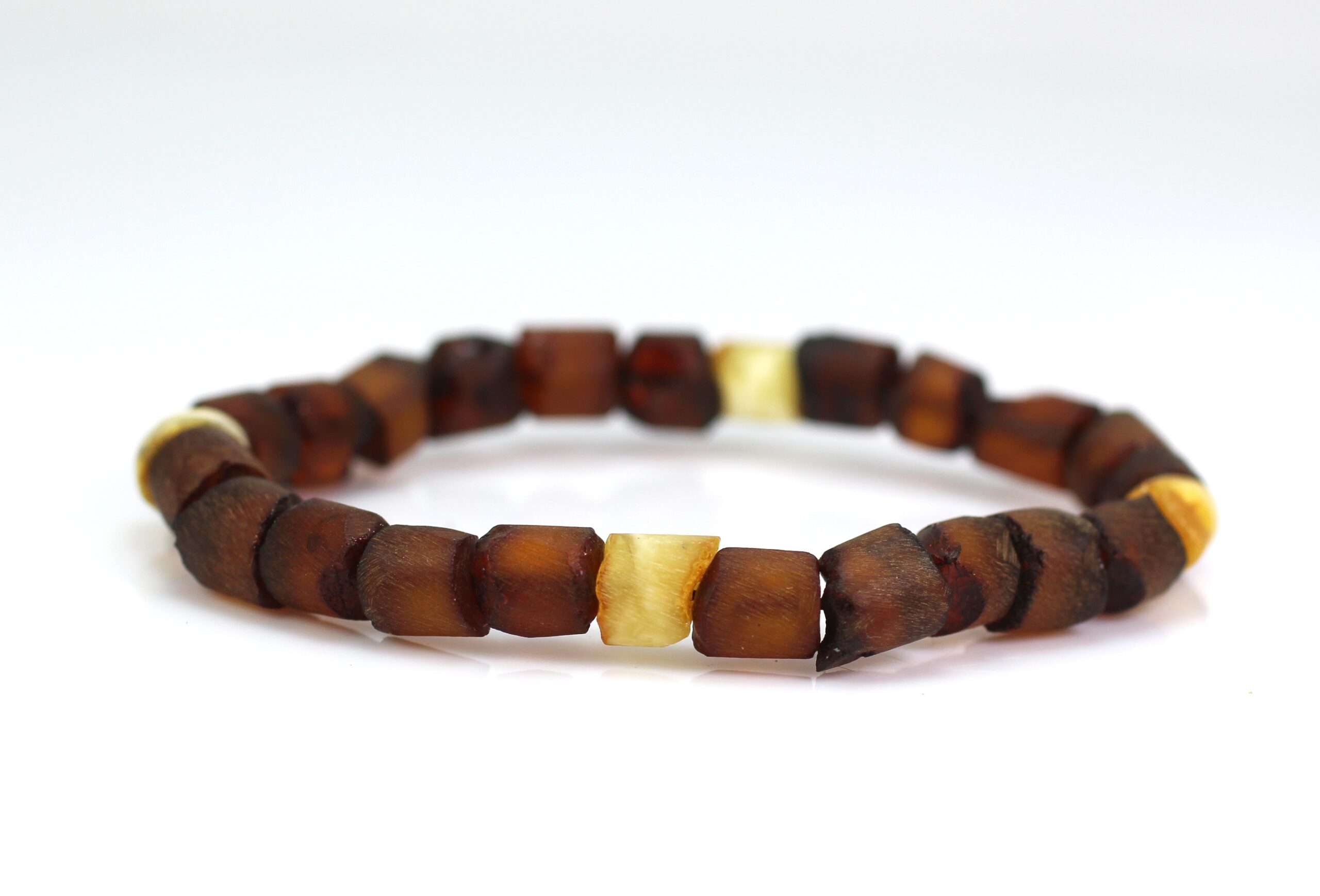 Amber men’s bracelet is made of natural Baltic amber. Cylindrical shape beads, unpolished. Amazing natural, dark brown amber color. Bracelet is unisex, suits for men’s and woman’s.