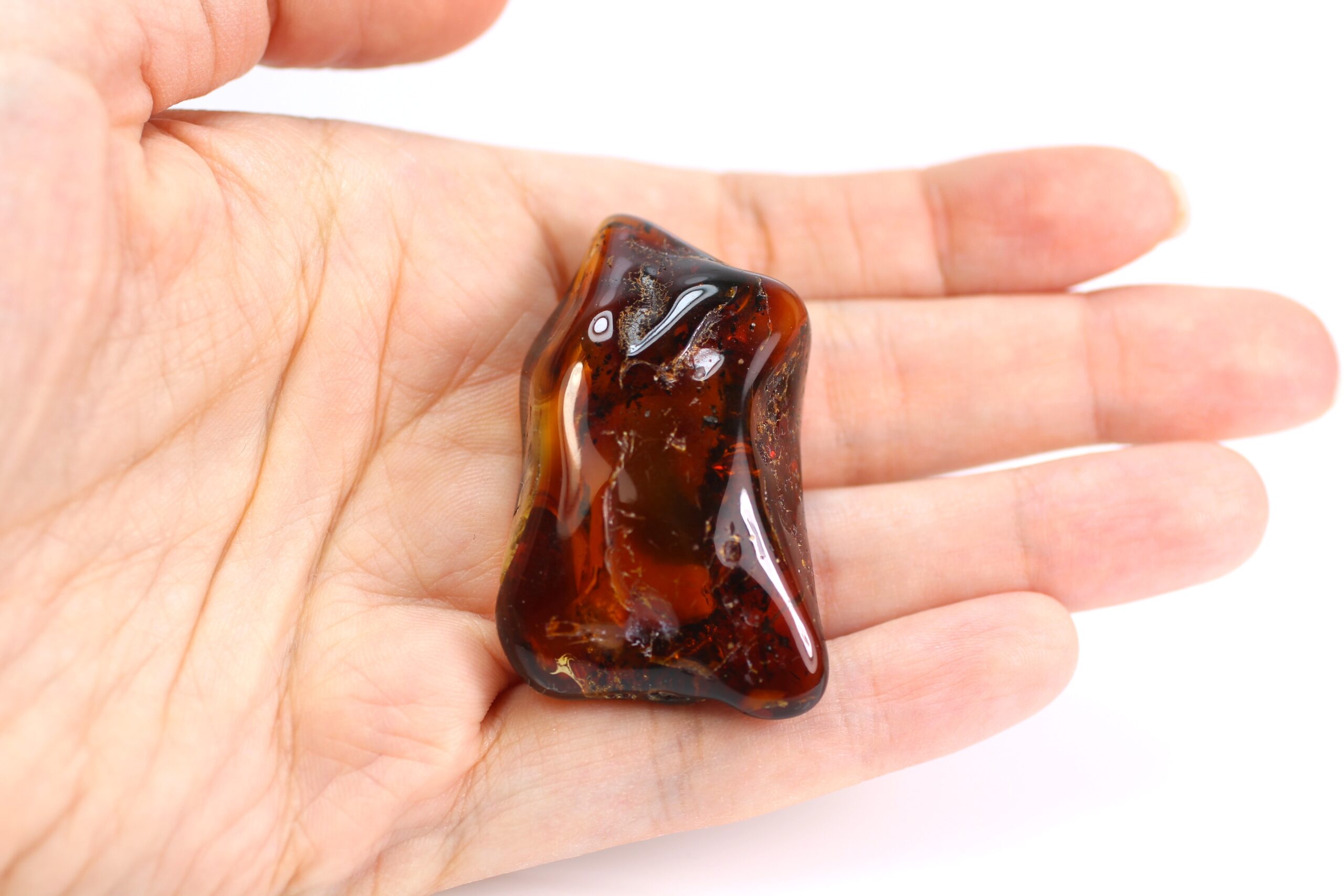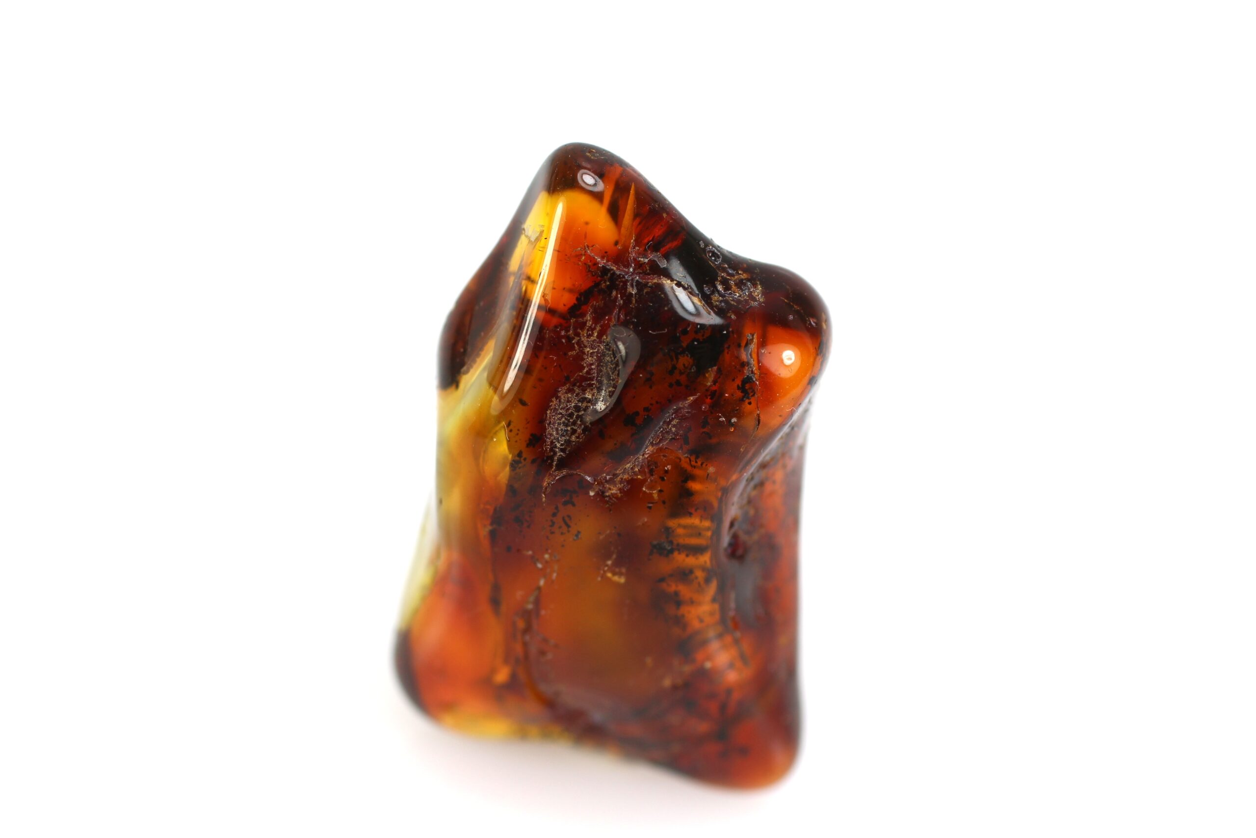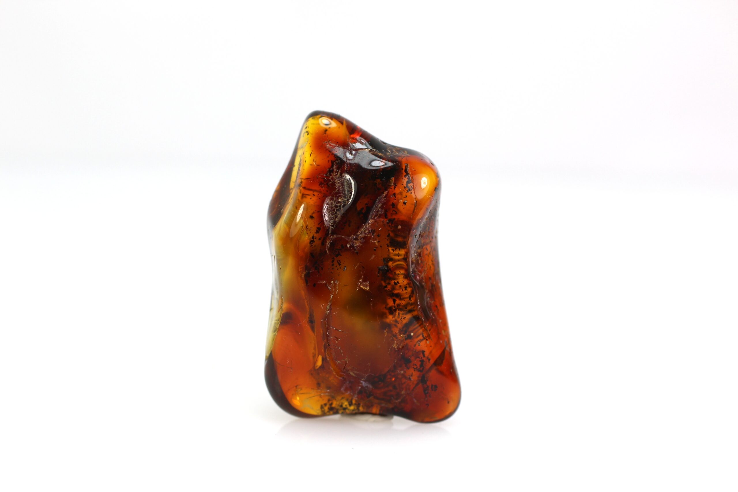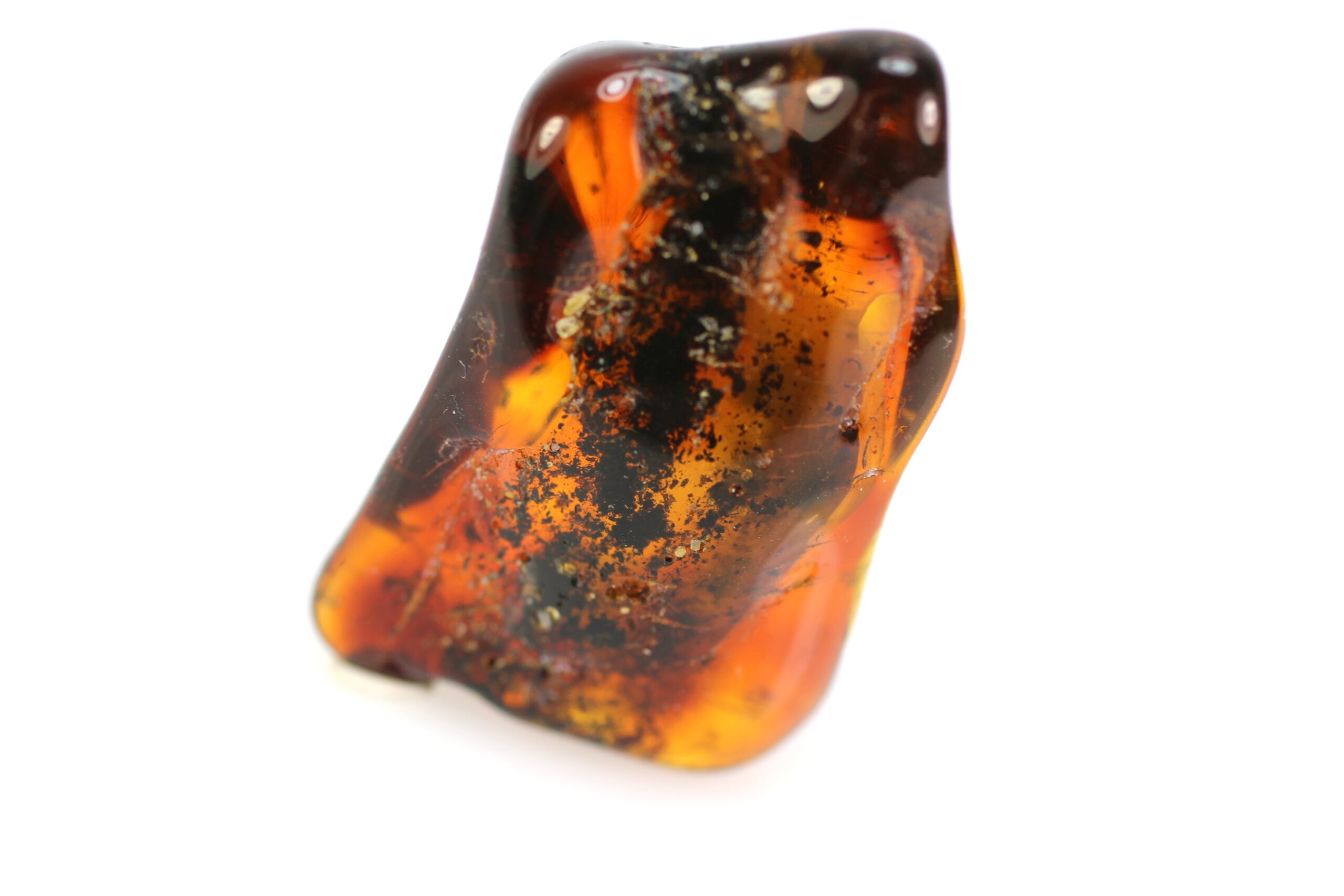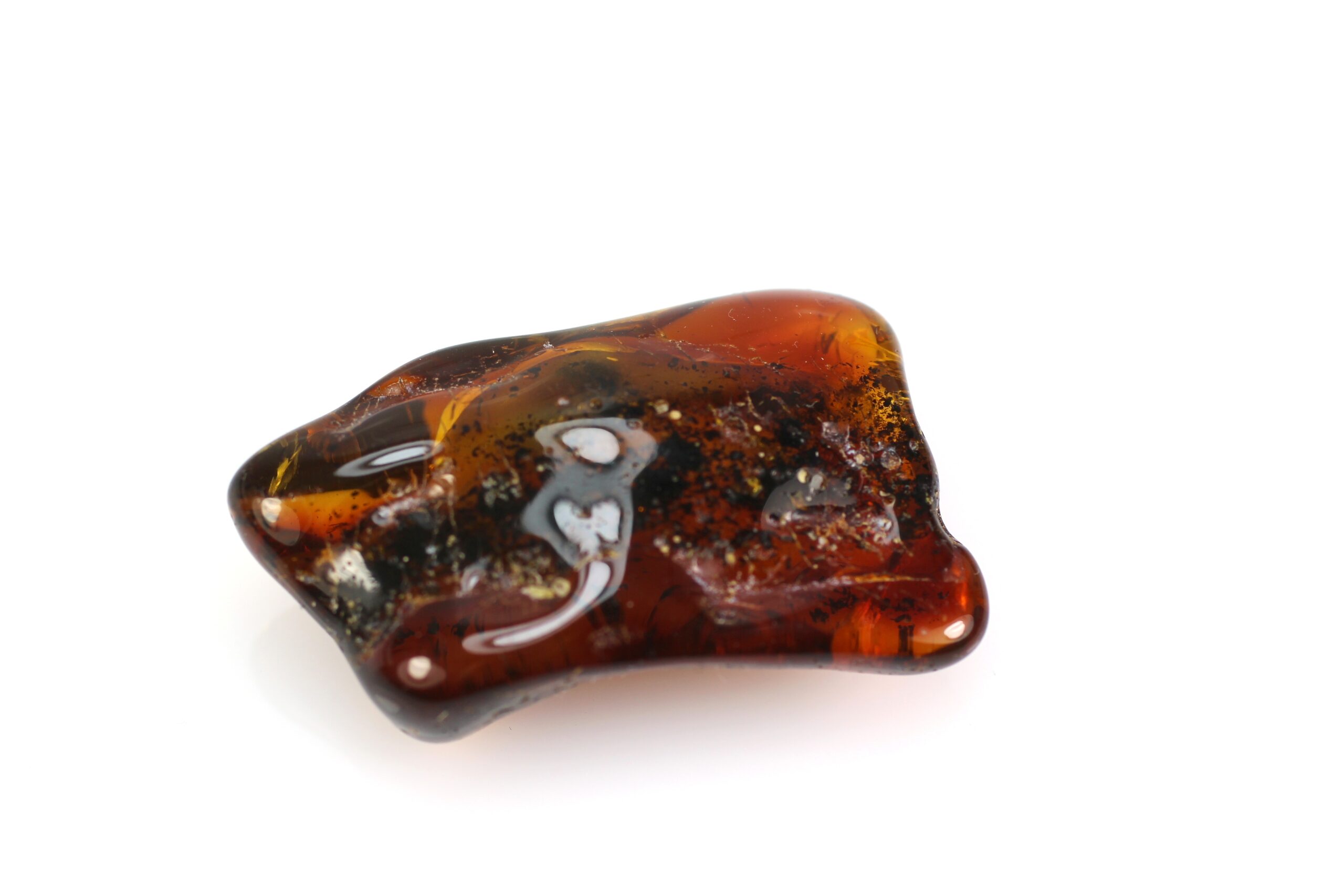 • Baltijos gintaro gabaliukas, apdirbtas, bet paliekant šiek tiek natūralumo, vietomis natūralios gintaro žievės. Gabaliukas tamsiai rudos gintaro spalvos.