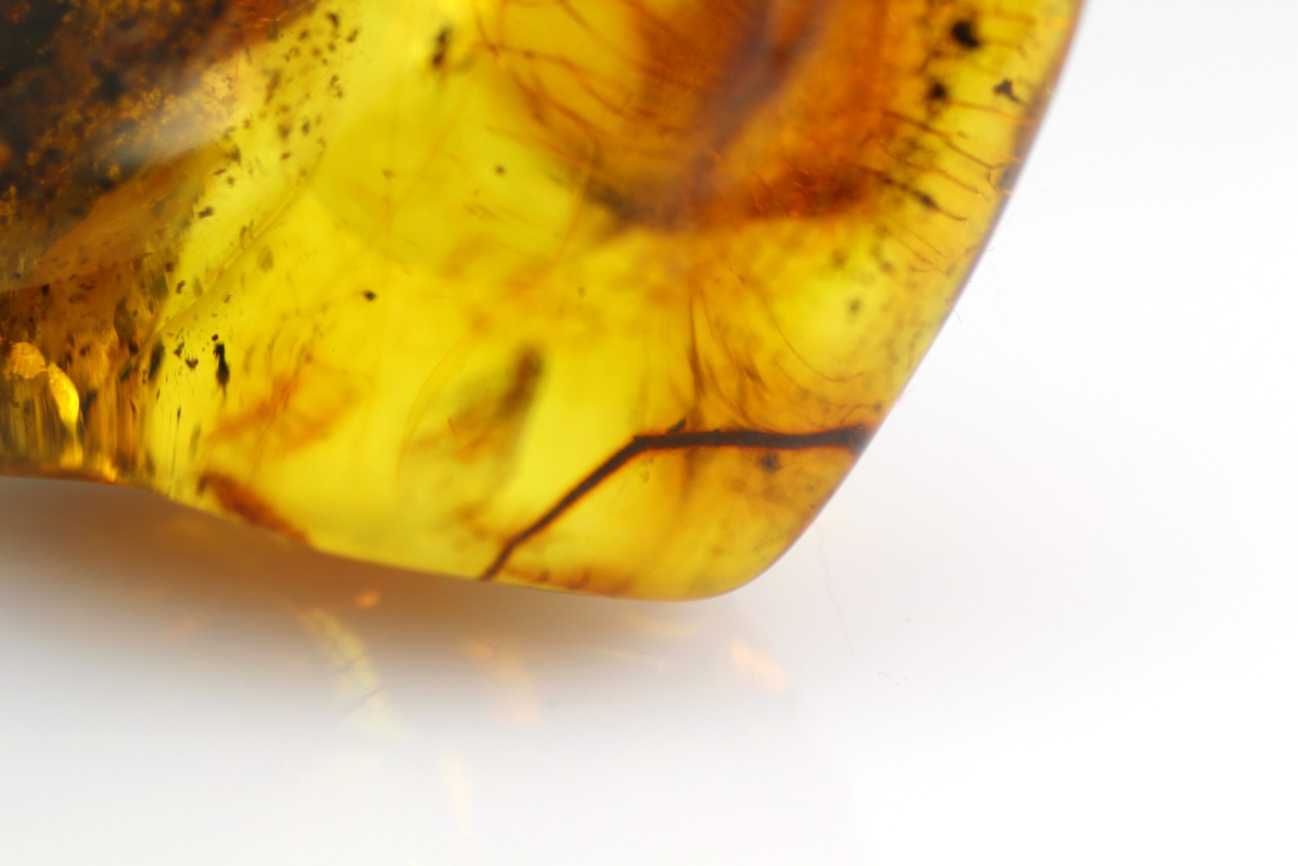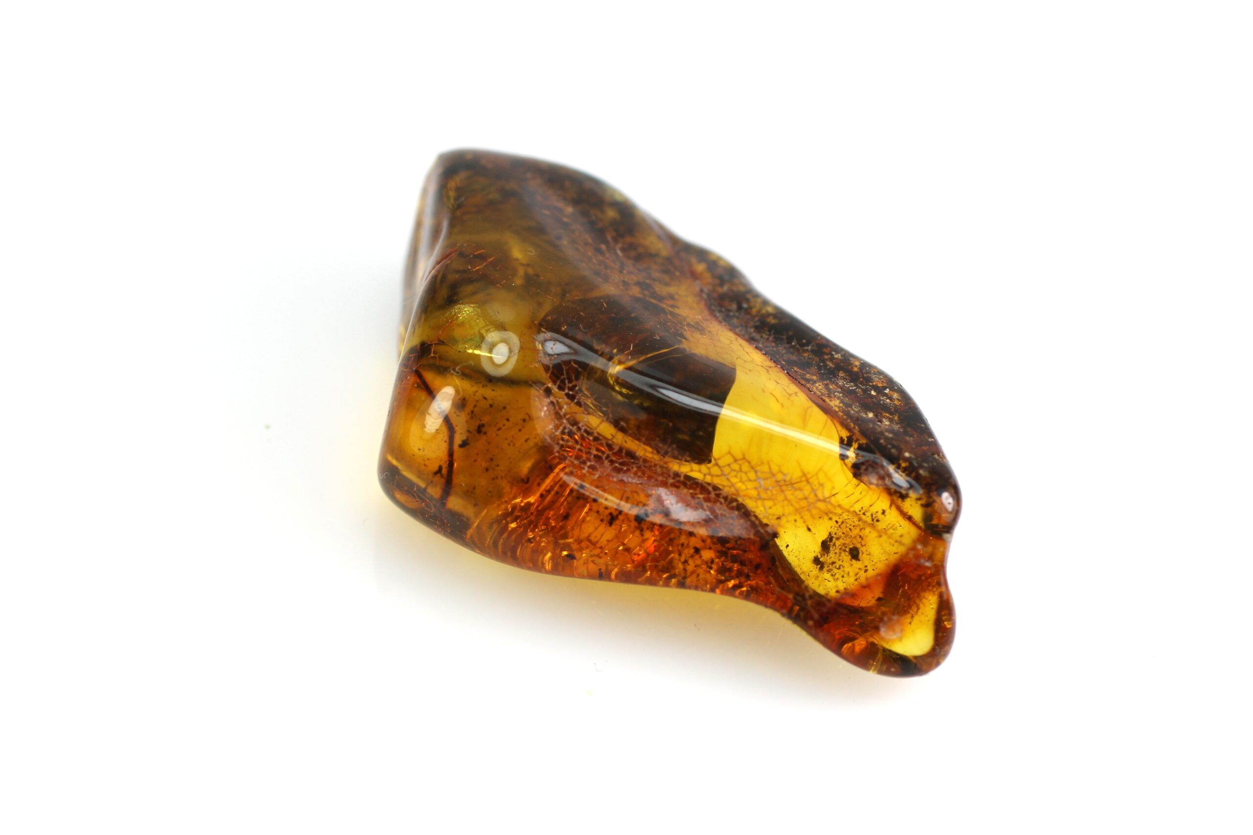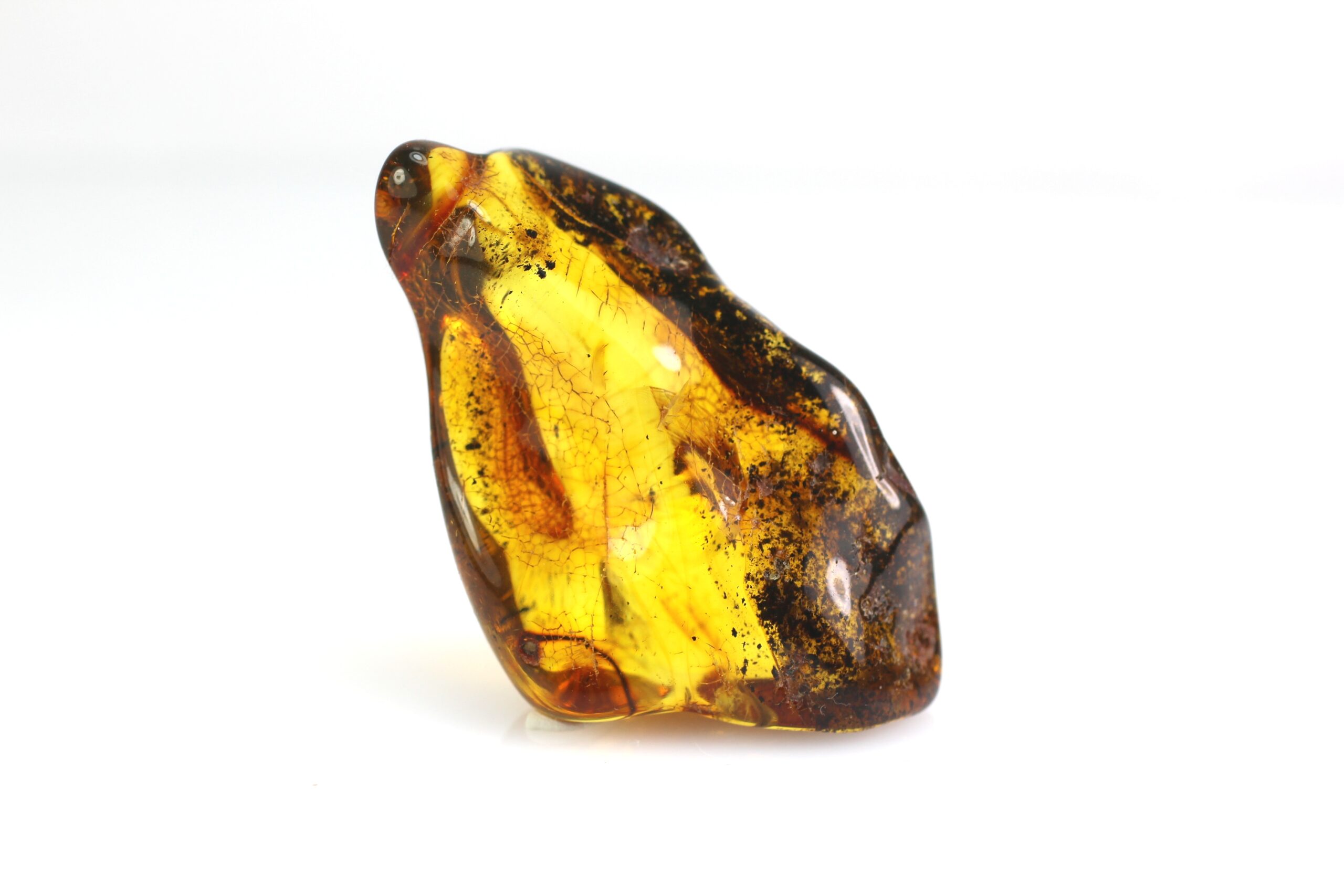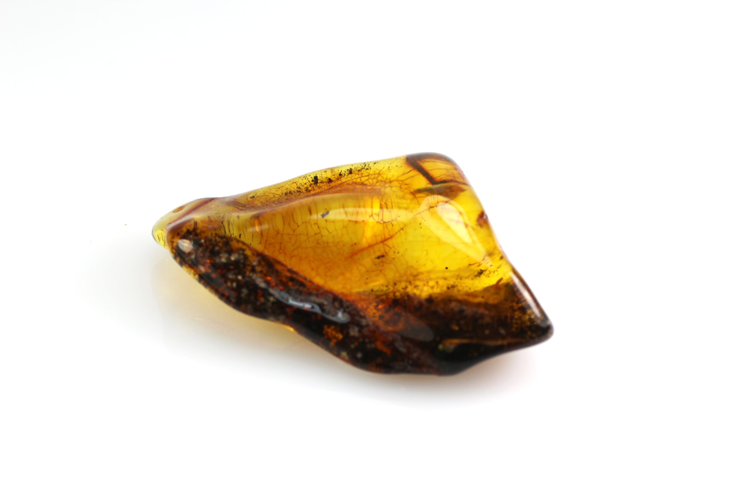 - Baltijos gintaro gabaliukas su inkliuzu, apdirbtas, bet paliekant šiek tiek natūralumo, vietomis natūralios gintaro žievės. Gabaliukas natūralios, rudos gintaro spalvos.