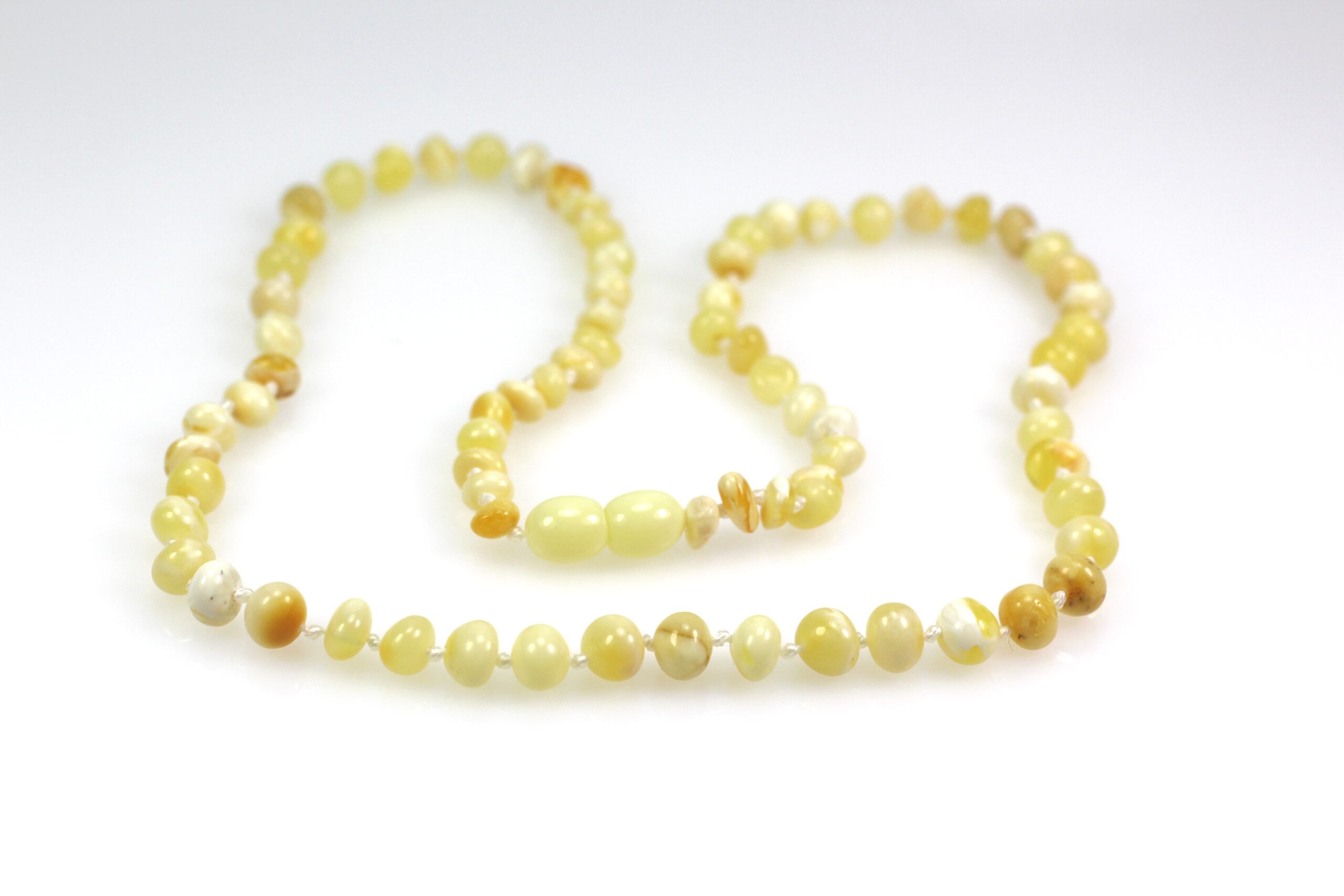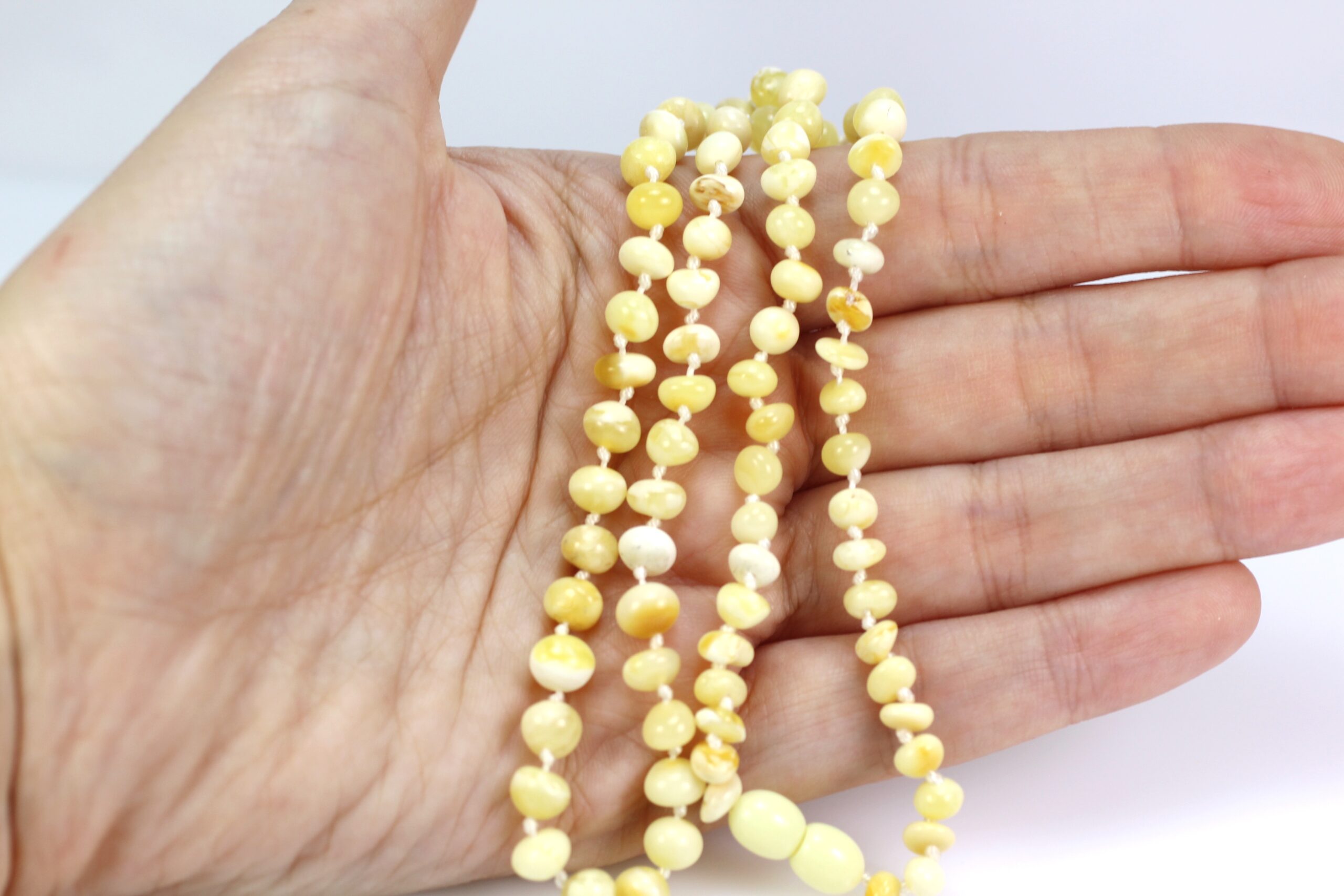 Gintariniai karoliai baltos spalvos