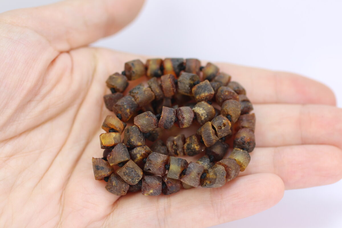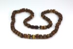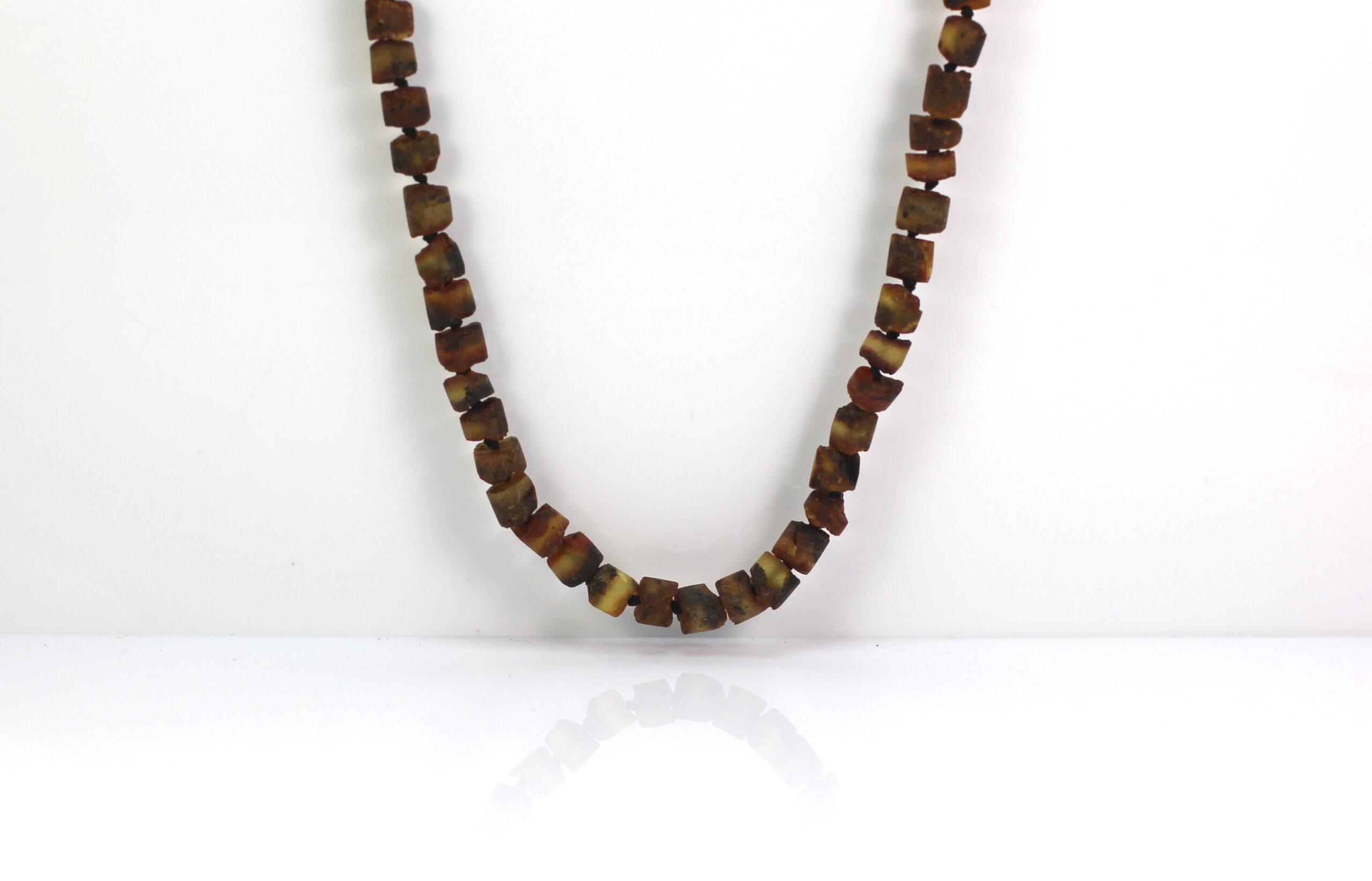 Gintariniai vyriški karoliai pagaminti iš natūralus Baltijos gintaro. Gintaro gabaliukai apdirbti cilindro formos paliekant šiek tiek natūralumo. Nepoliruoti, juodos, rudos gintaro spalvos.