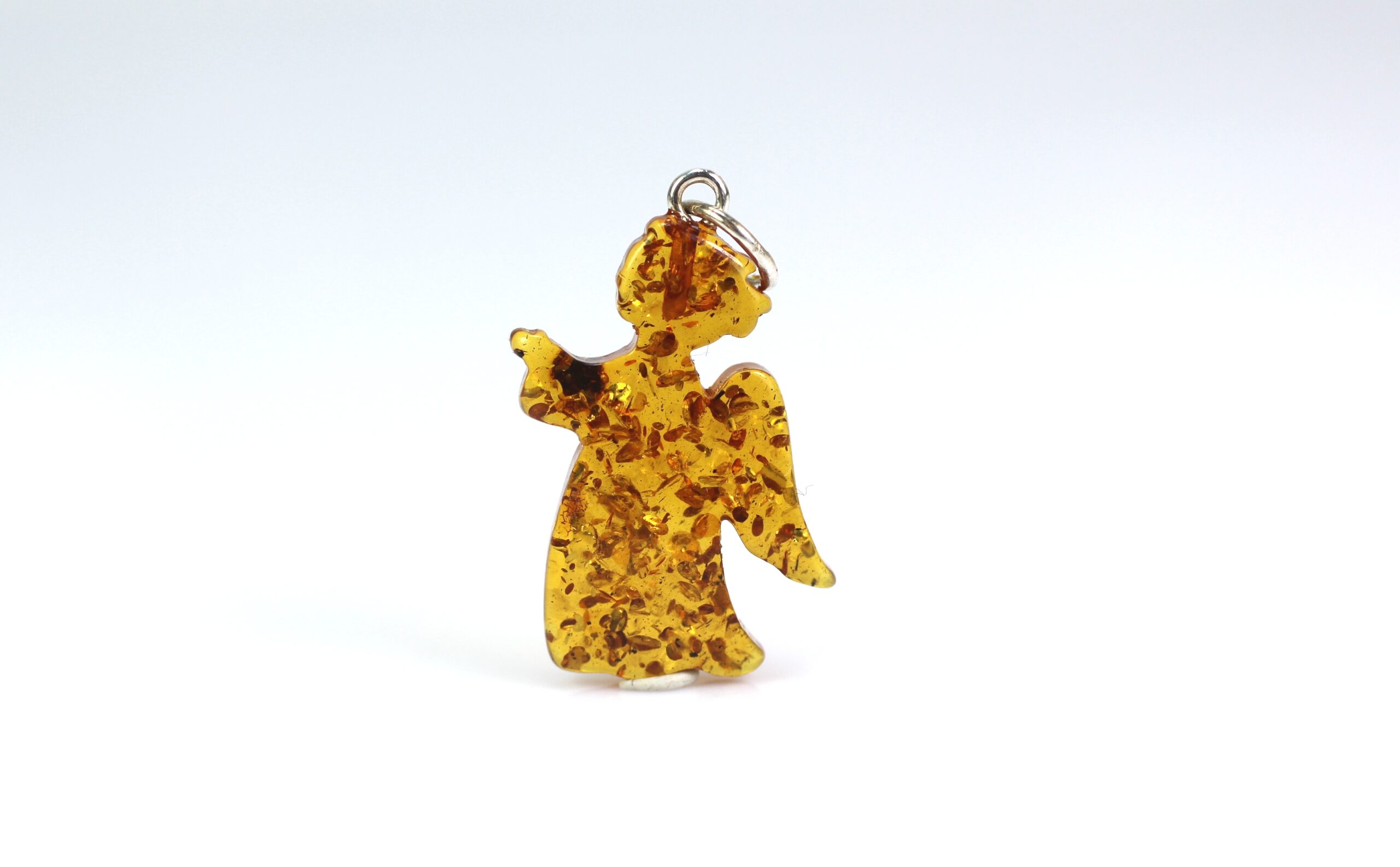 Gintarinis pakabukas angelas pagamintas iš natūralus Baltijos gintaro. Angelas labai gražios, geltonos/rudos, skaidrios gintaro spalvos. Pakabukas rankų darbo.