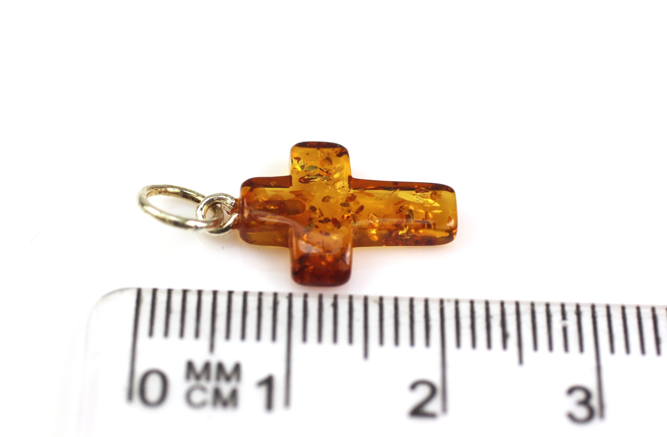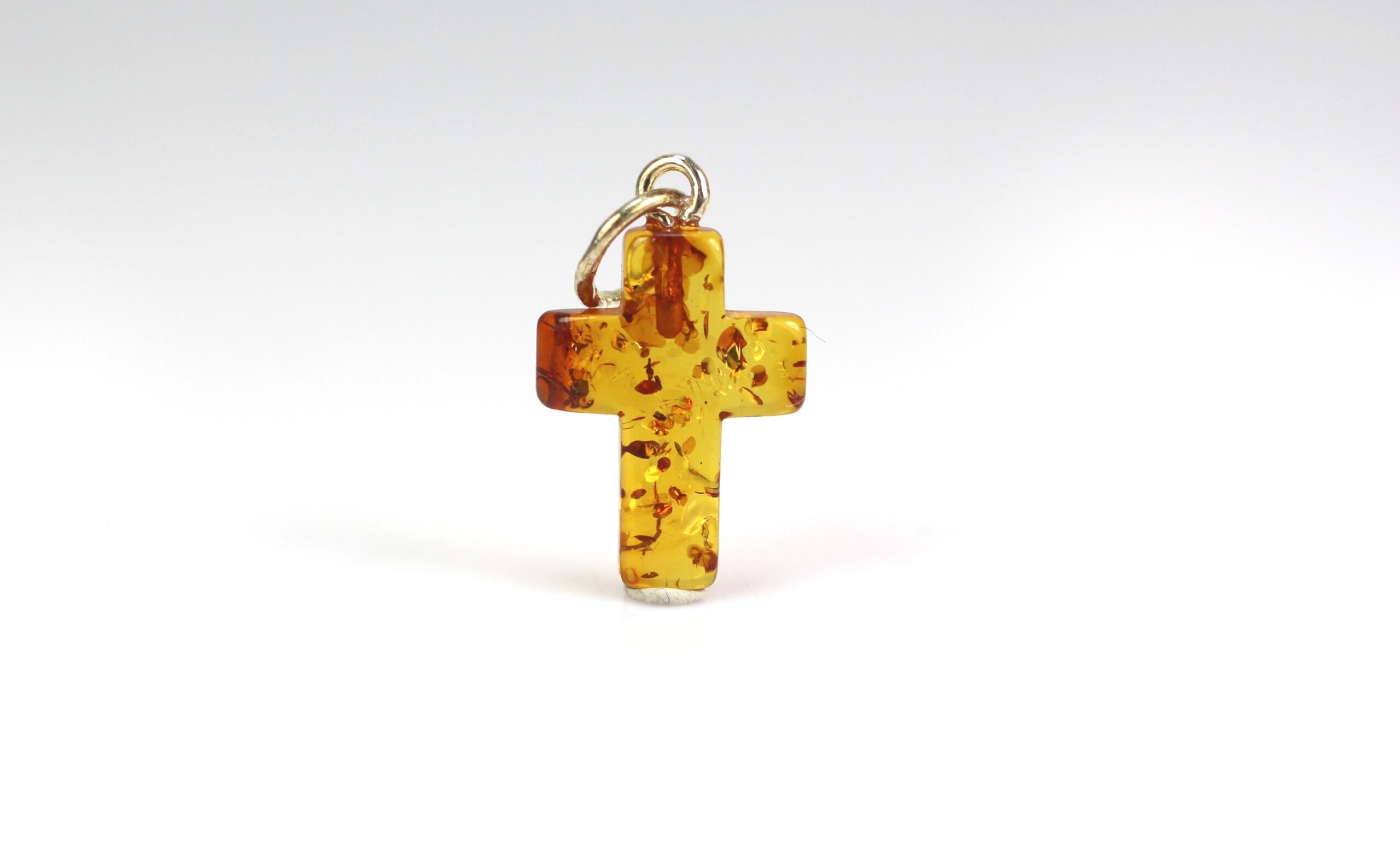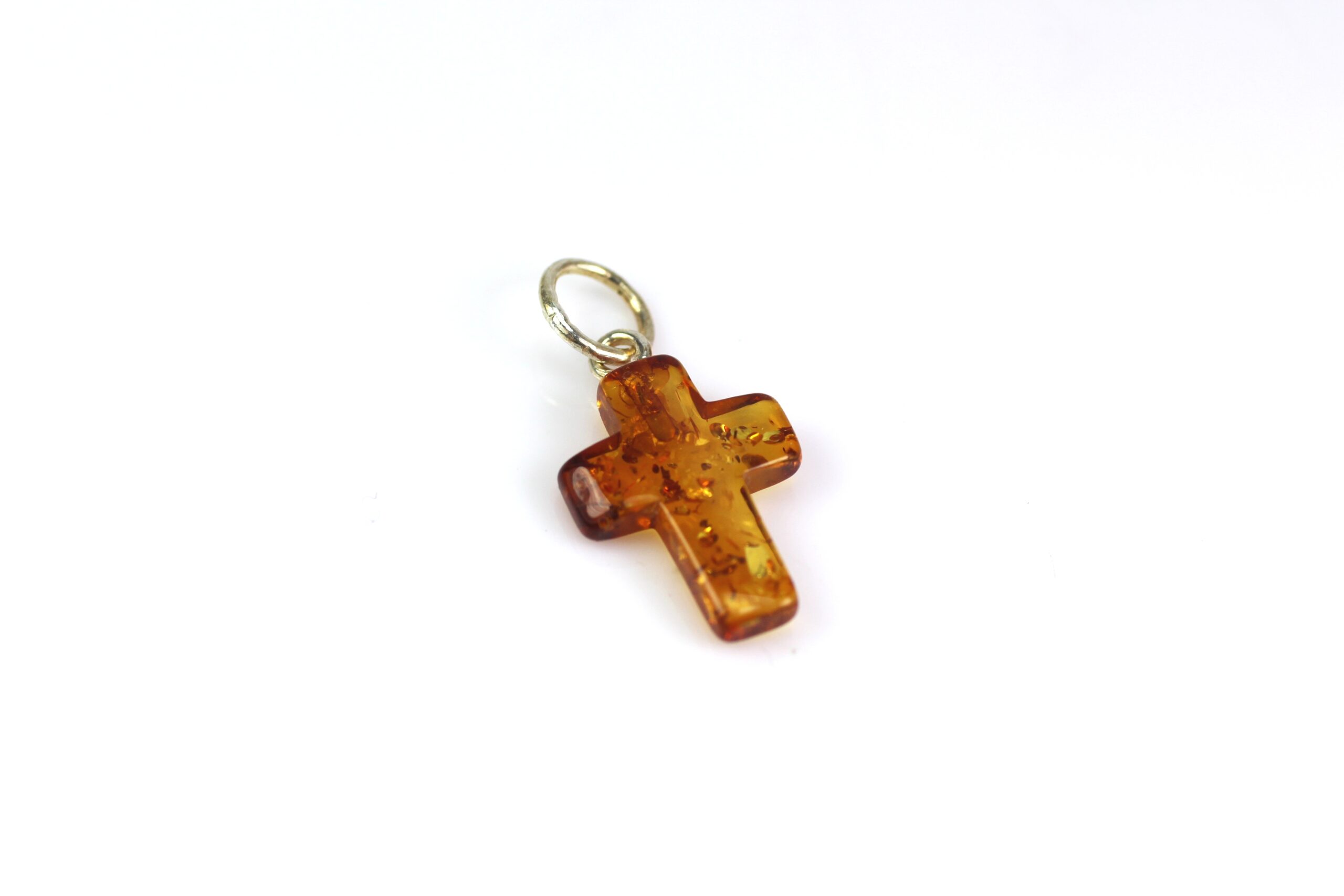 • Gintarinis pakabukas kryželis pagamintas iš natūralus Baltijos gintaro. Kryžiukas  rudos gintaro spalvos spalvos, su gintaro žėručiais viduje. Minimalistinis, rankų darbo.