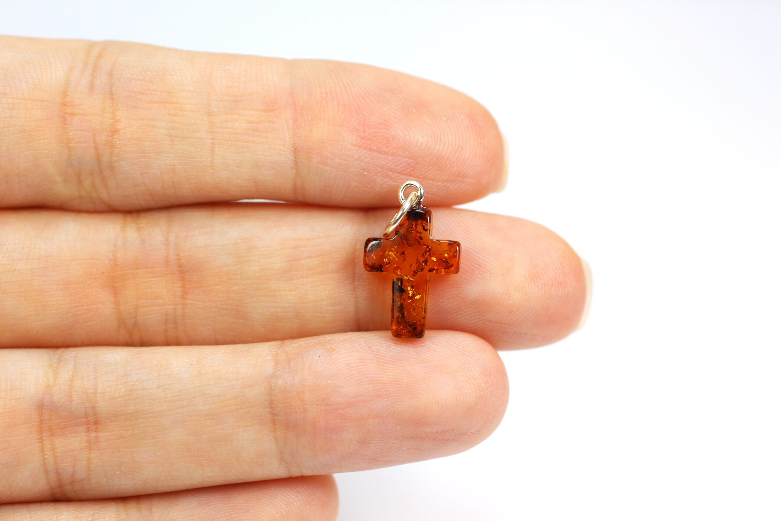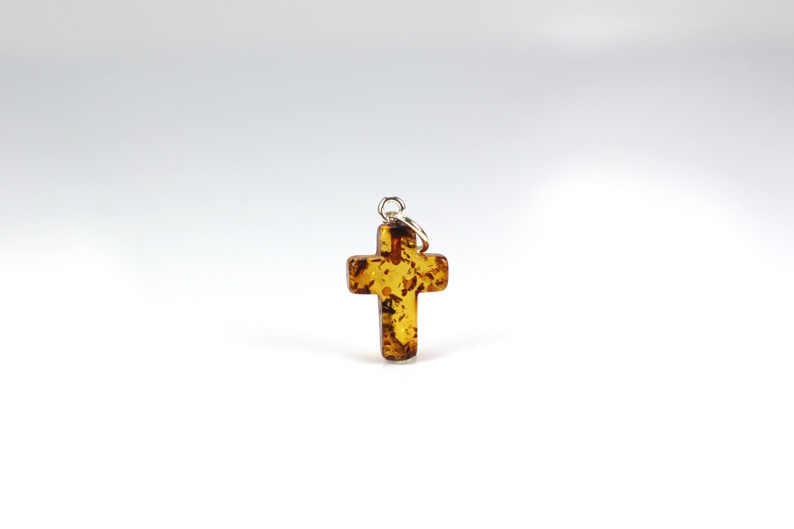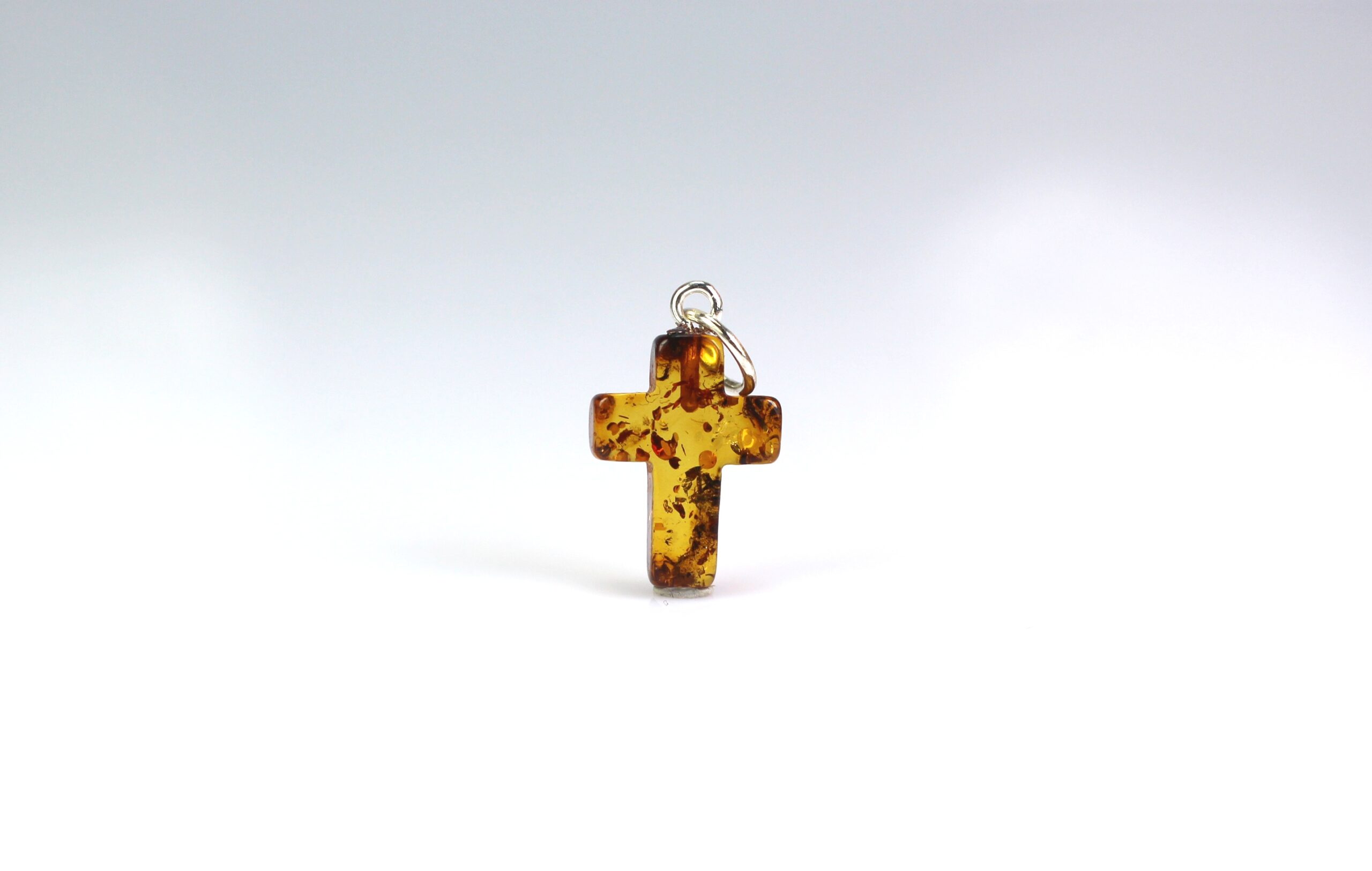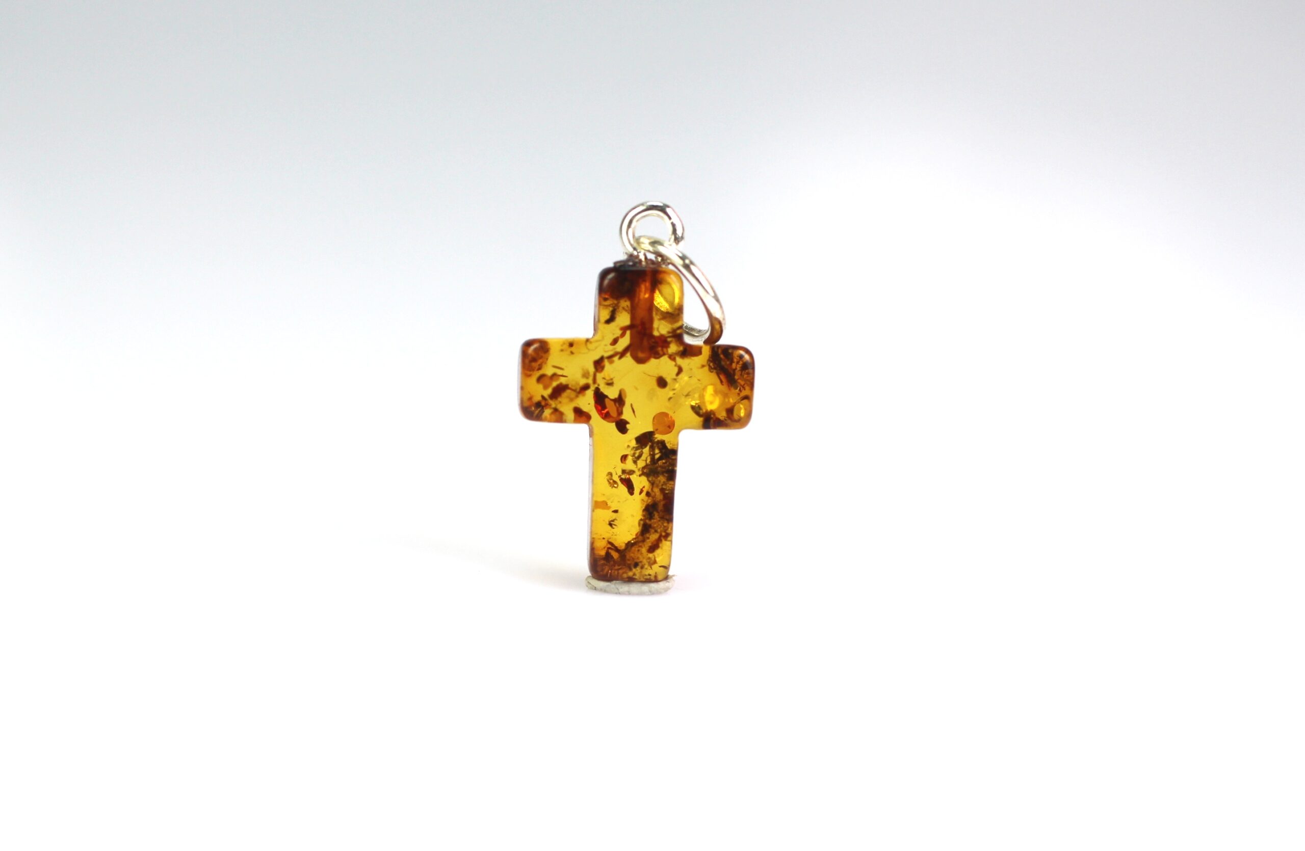 • Gintarinis pakabukas kryželis pagamintas iš natūralus Baltijos gintaro. Kryžiukas rudos gintaro spalvos spalvos, su gintaro žėručiais. Minimalistinis, rankų darbo.