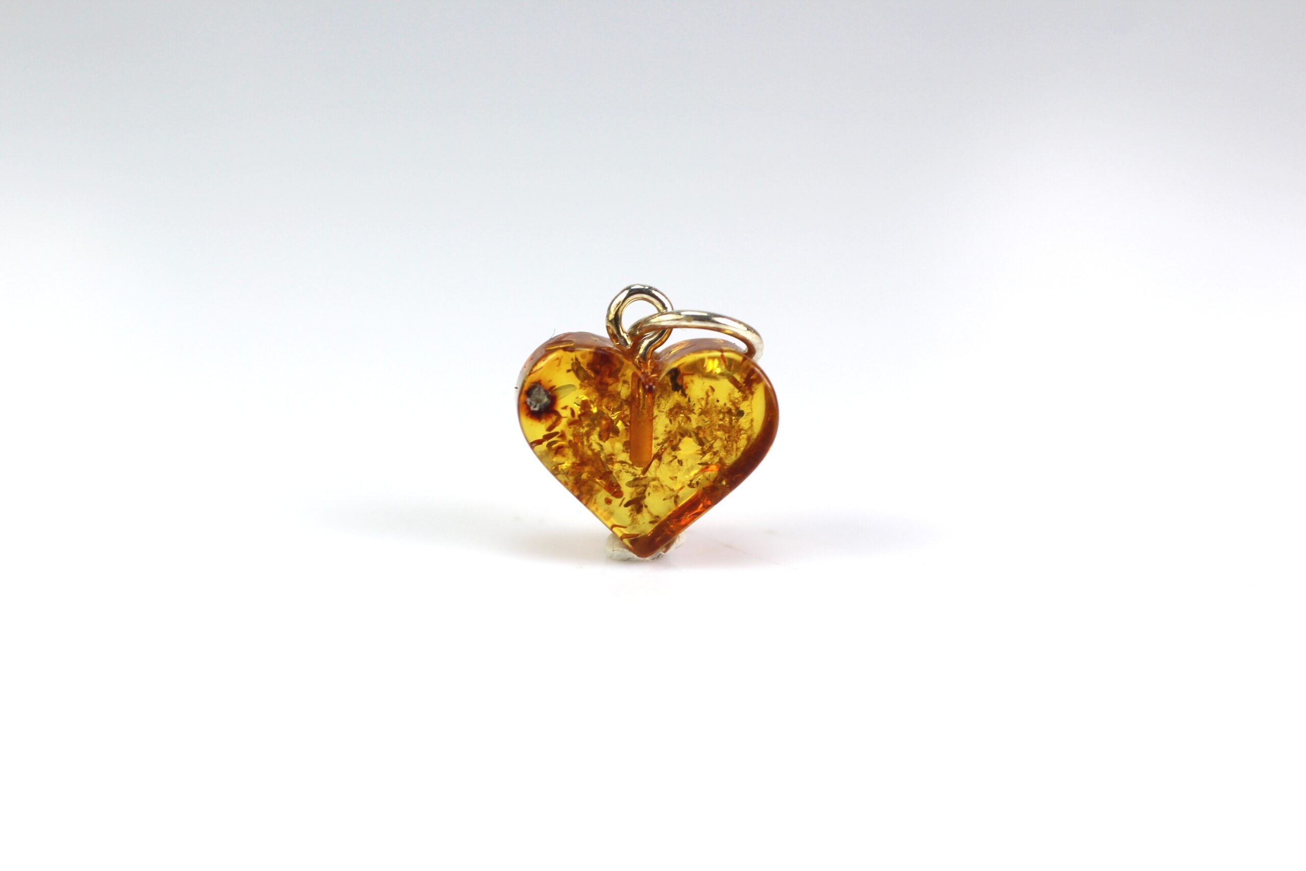 Gintarinis pakabukas širdelė pagamintas iš natūralus Baltijos gintaro. Širdelė labai gražios, rudos, skaidrios gintaro spalvos su gintaro žėručiais. Pakabukas rankų darbo.