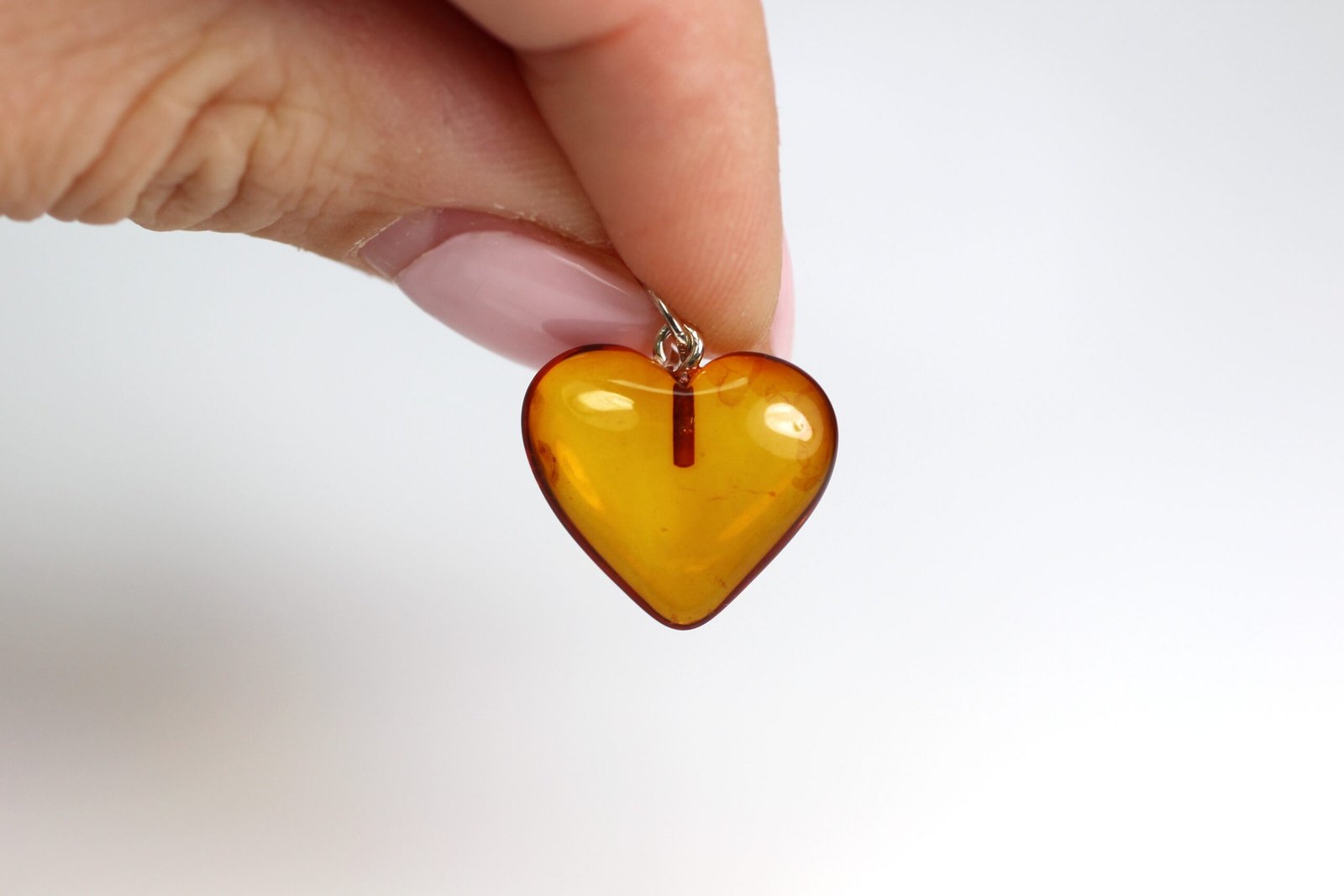 • Gintarinis pakabukas širdelė pagamintas iš natūralus Baltijos gintaro. Širdelė  labai gražios, rudos, visiškai skaidrios gintaro spalvos. Pakabukas rankų darbo.