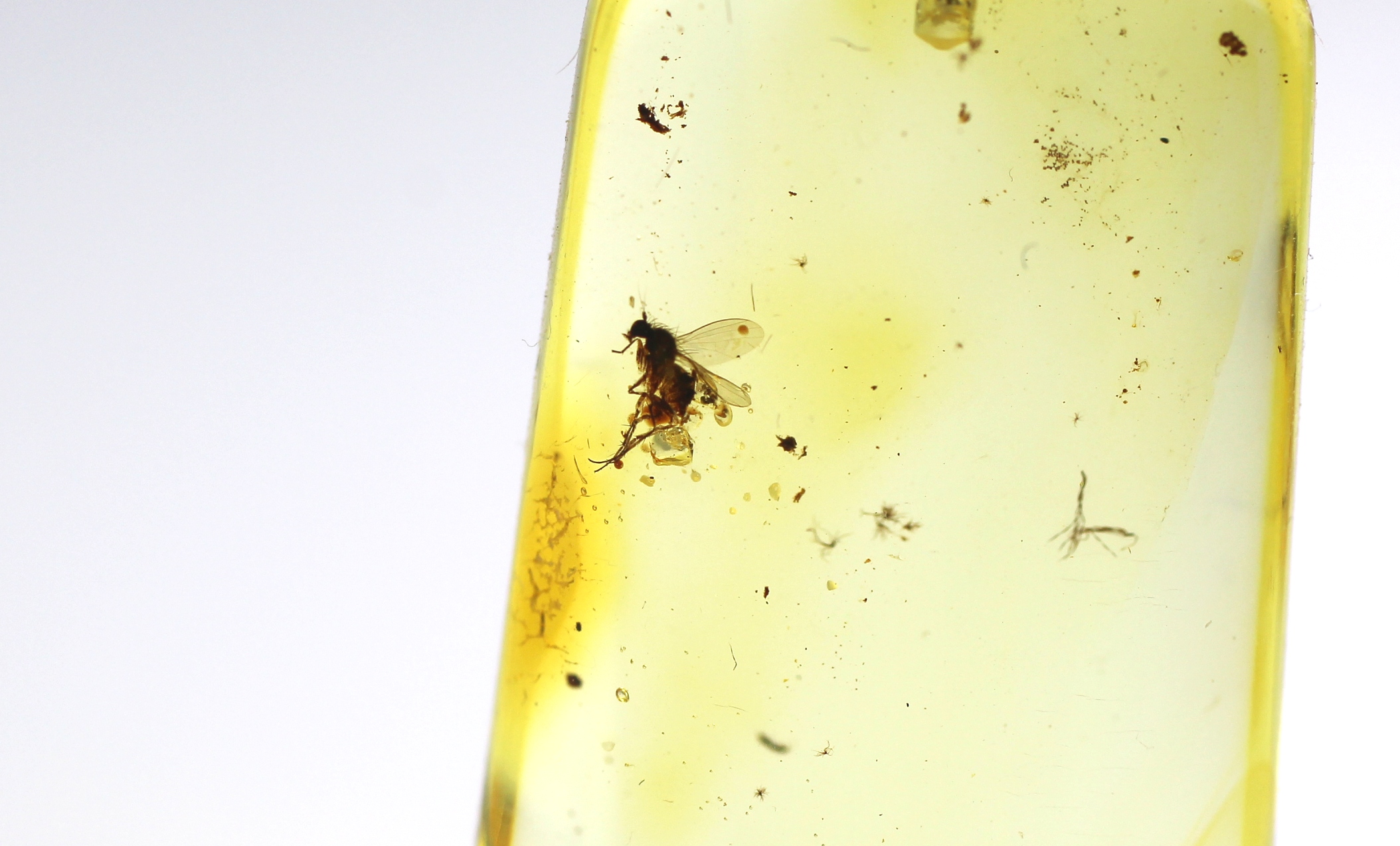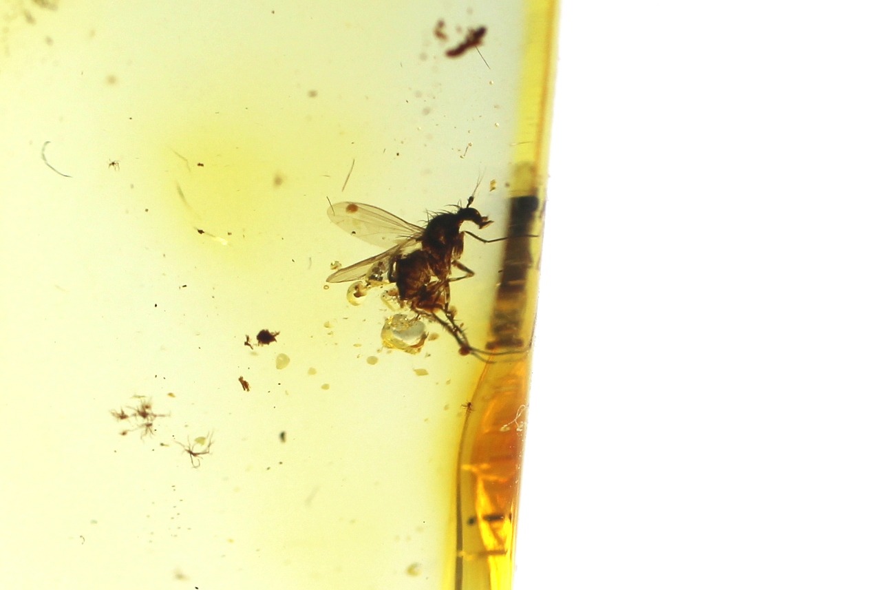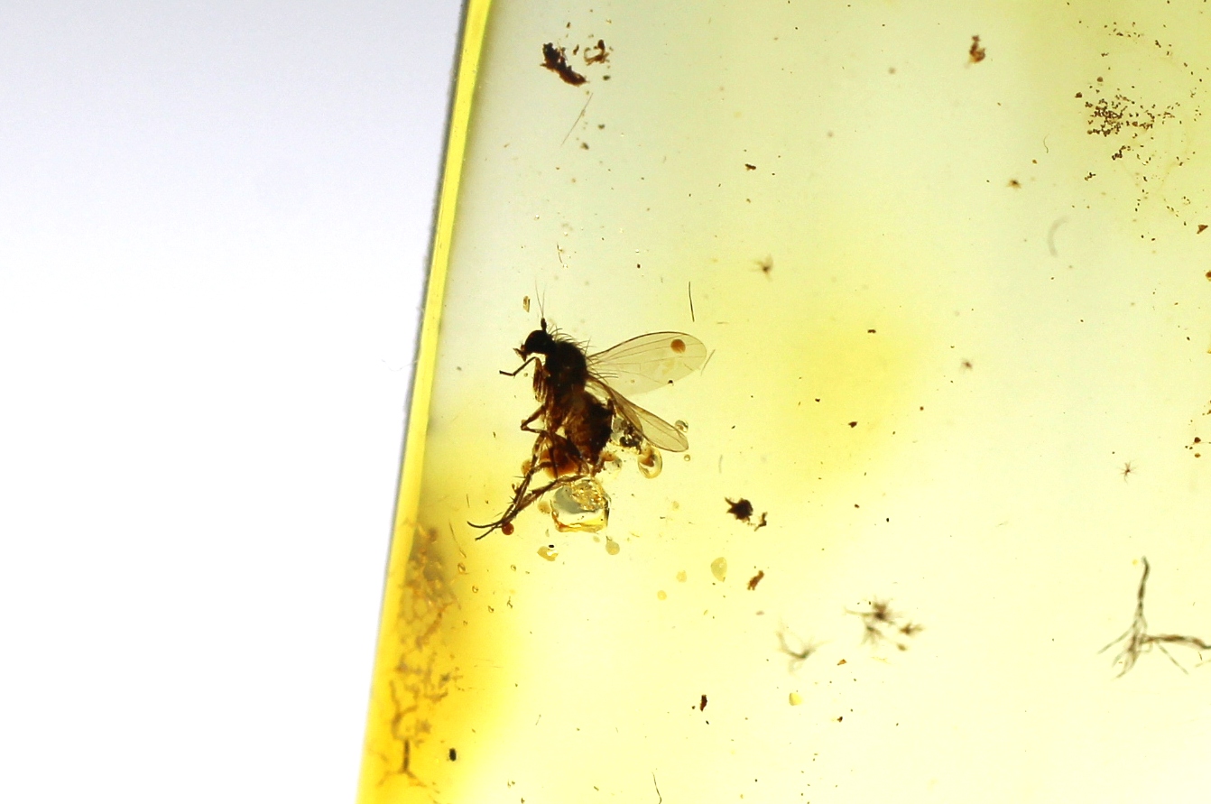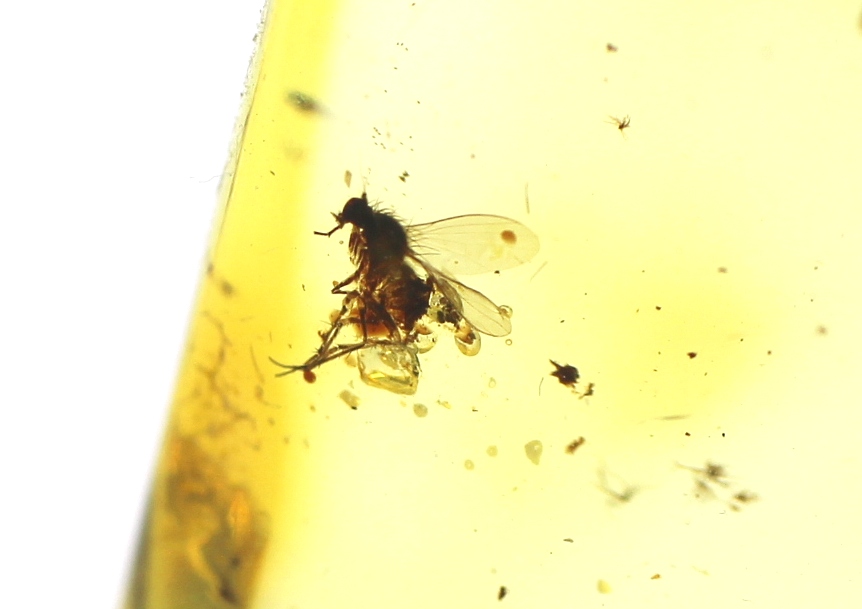 Gintarinis pakabukas su musės inkliuzu