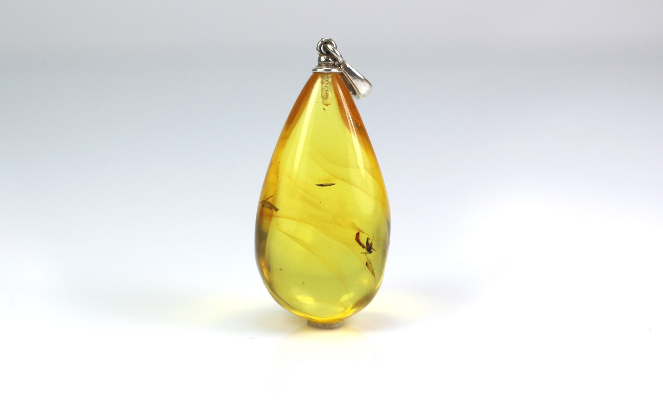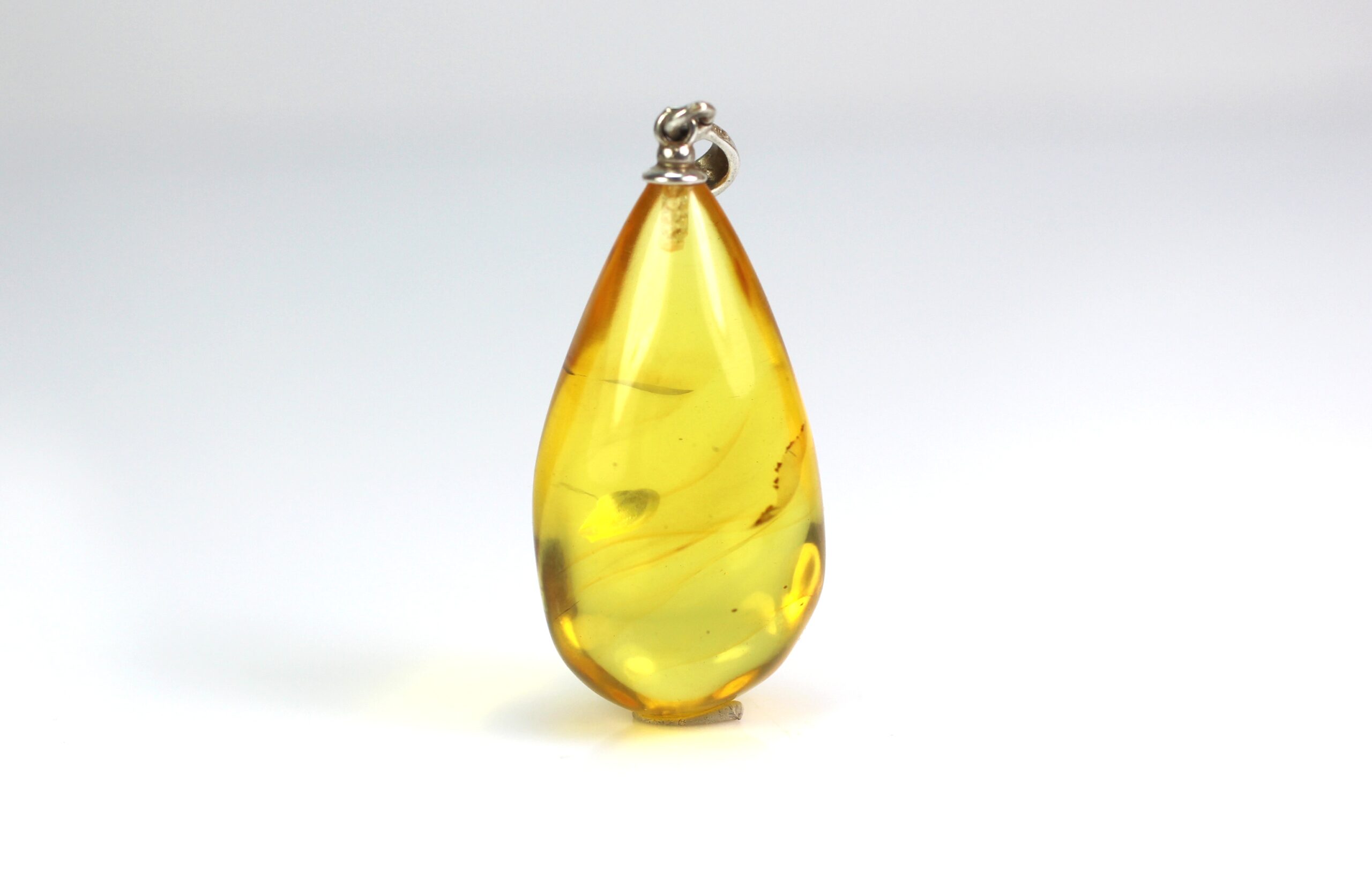 Pakabukas pagamintas iš natūralaus Baltijos gintaro su musytės inkliuzu. Pats pakabukas skaidrus, inkliuzas gerai matosi. Gintaro gabaliukas lašo formos.