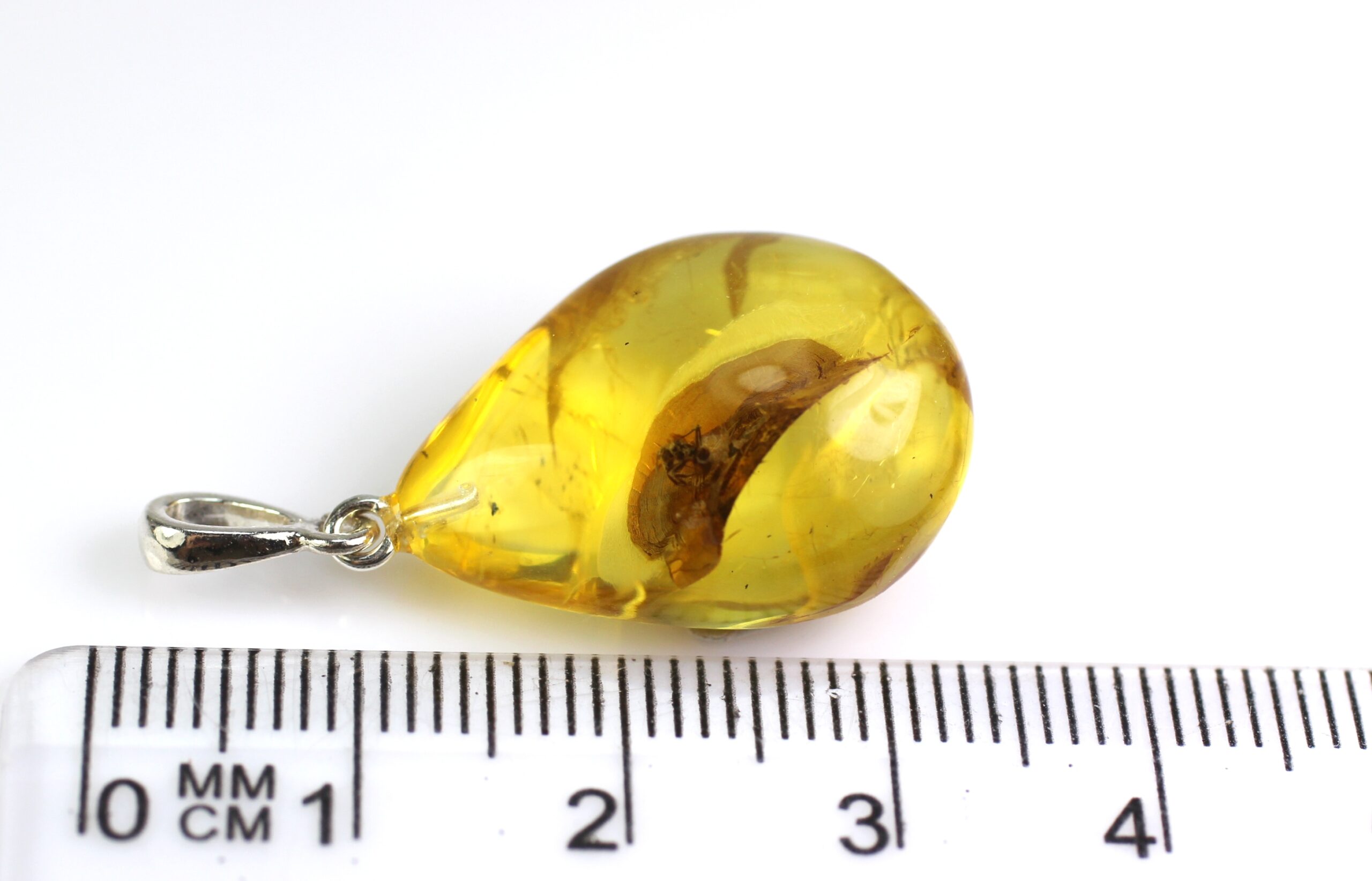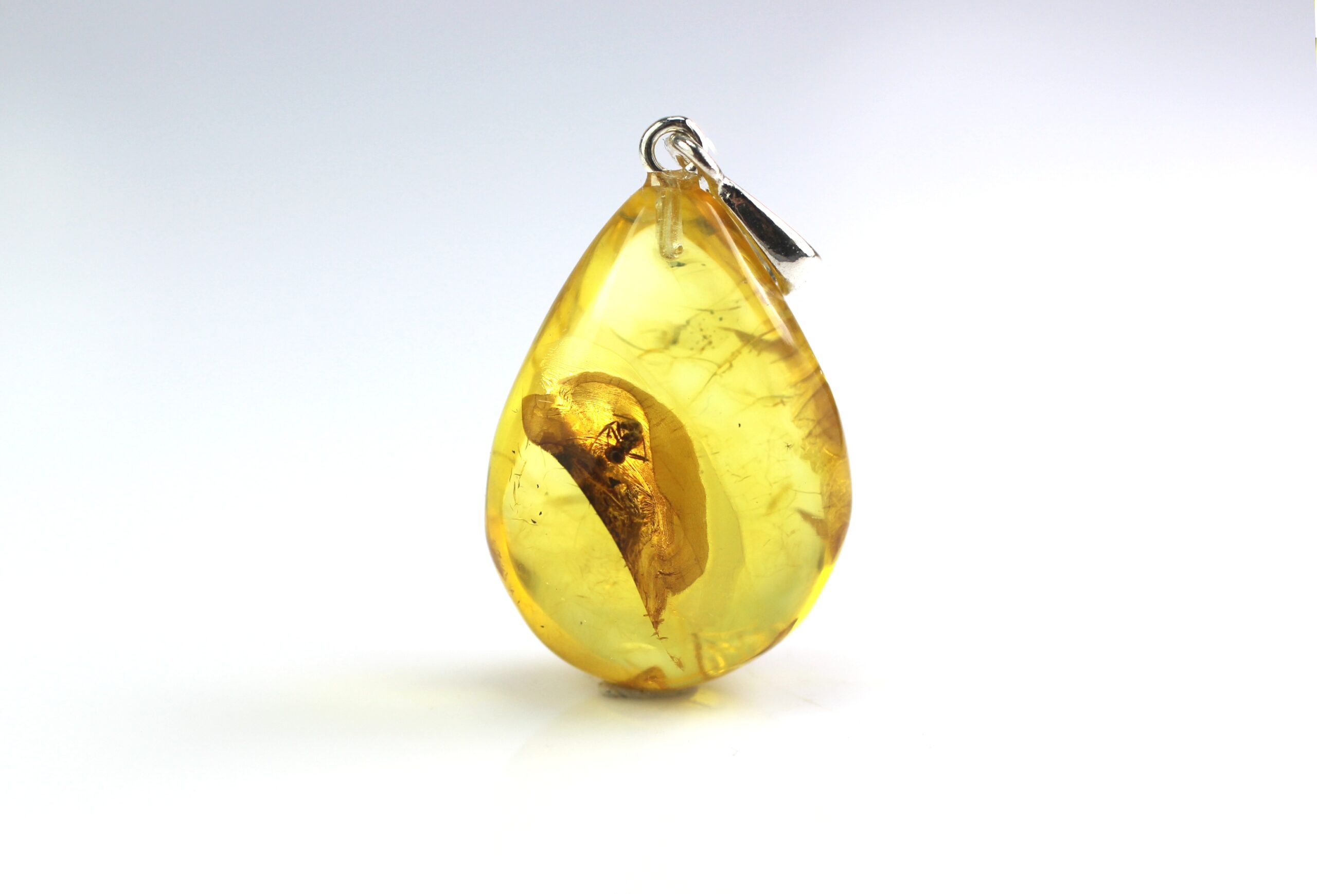 Gintarinis pakabukas su inkliuzu pagamintas iš natūralaus Baltijos gintaro su skruzdės inkliuzu. Pats pakabukas skaidrus, inkliuzas gerai matosi. Gintaro gabaliukas lašo formos.
