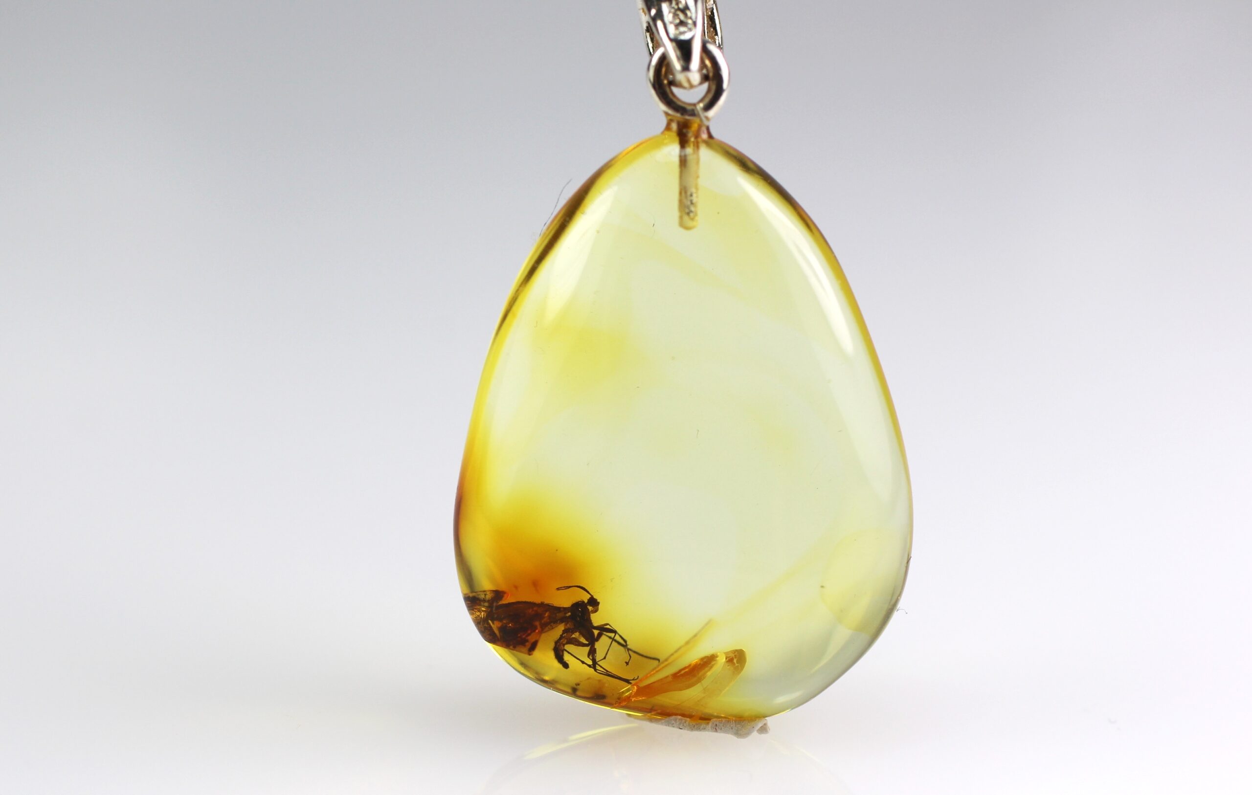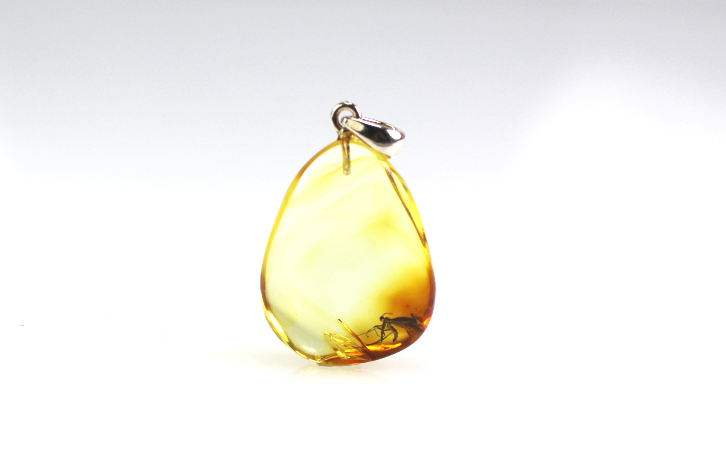 • Gintarinis pakabukas su vapsvos inkliuzu pagamintas iš natūralaus Baltijos gintaro. Pats pakabukas skaidrus, inkliuzas gerai matosi. Gintaro gabaliukas pailgos formos.