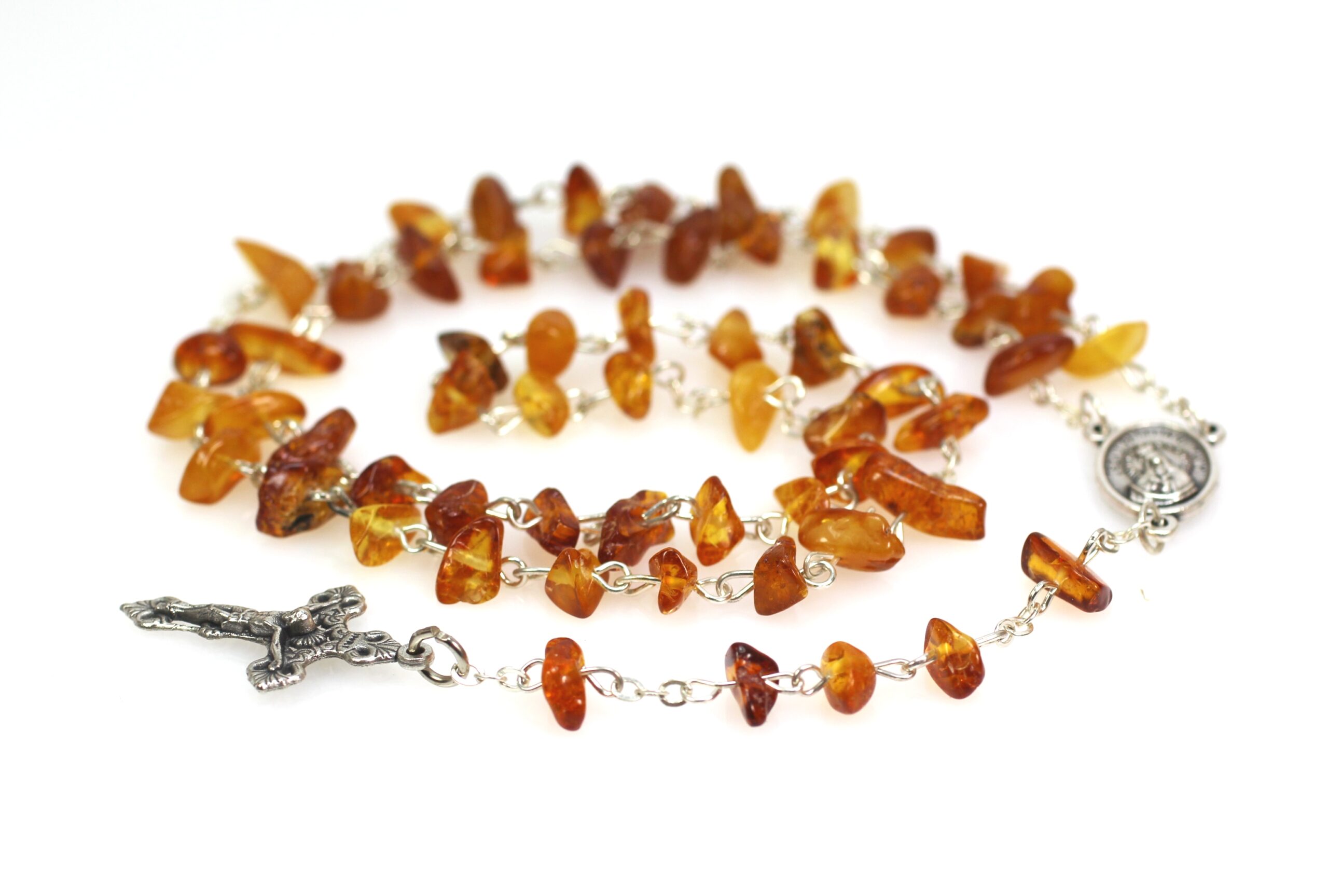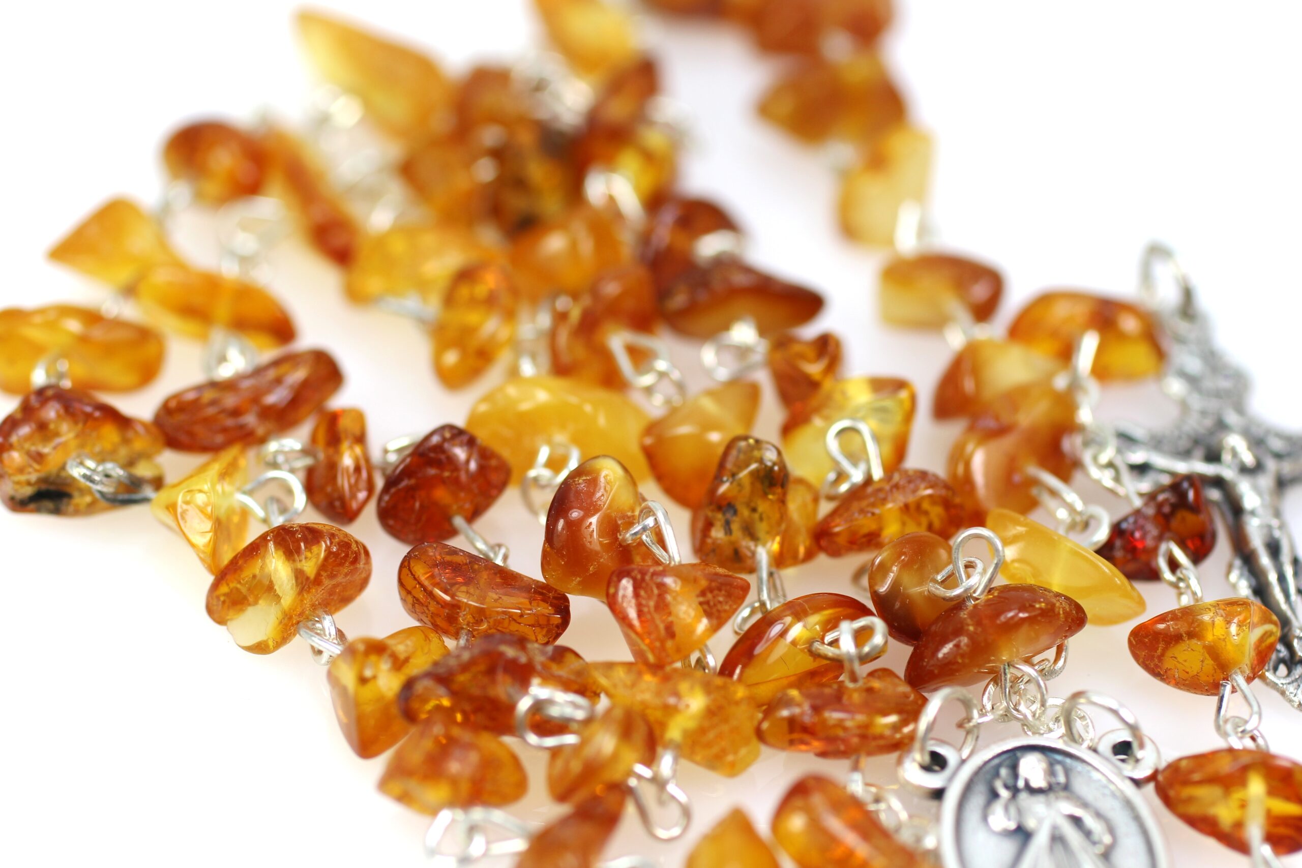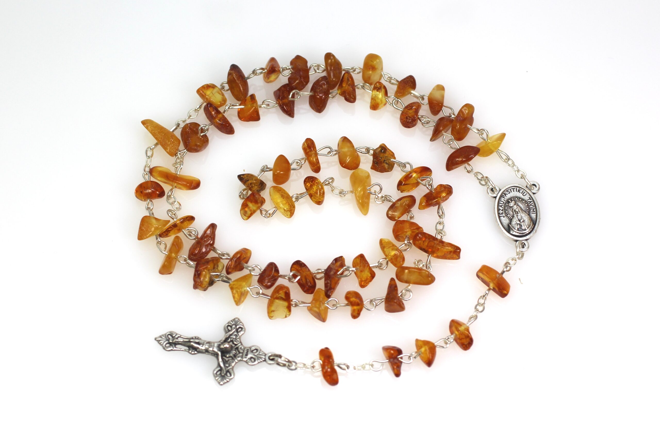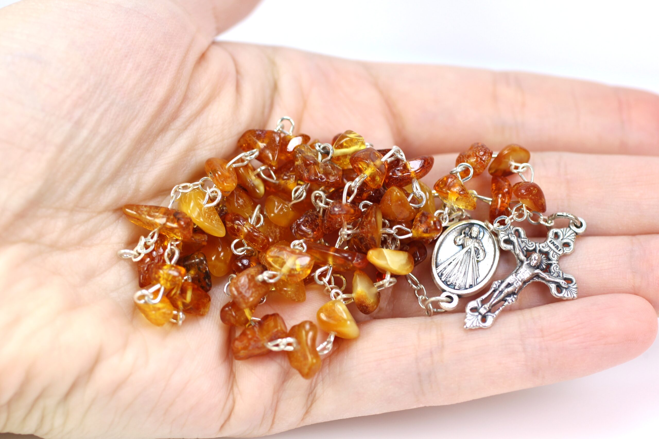• Tai natūralaus, aukštos kokybės, gintarinis rožančius. Geltonos ir šviesiai rudos Baltijos gintaro spalvų. Visos metalinės detalės iš nerūdijančio plieno. Gintaro rožančius puiki  dovana krikštynų, pirmosios Komunijos ar kitoms progomis.