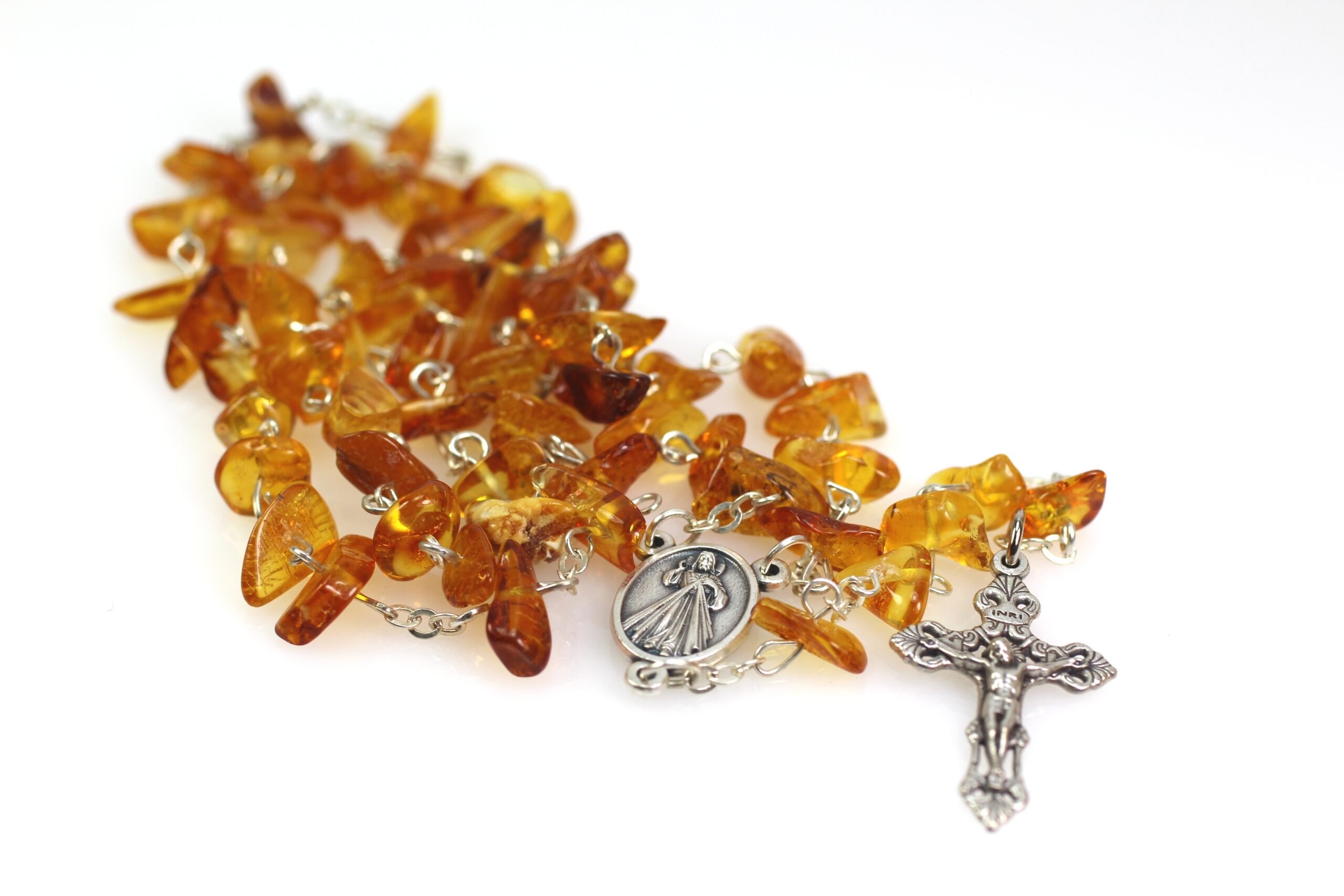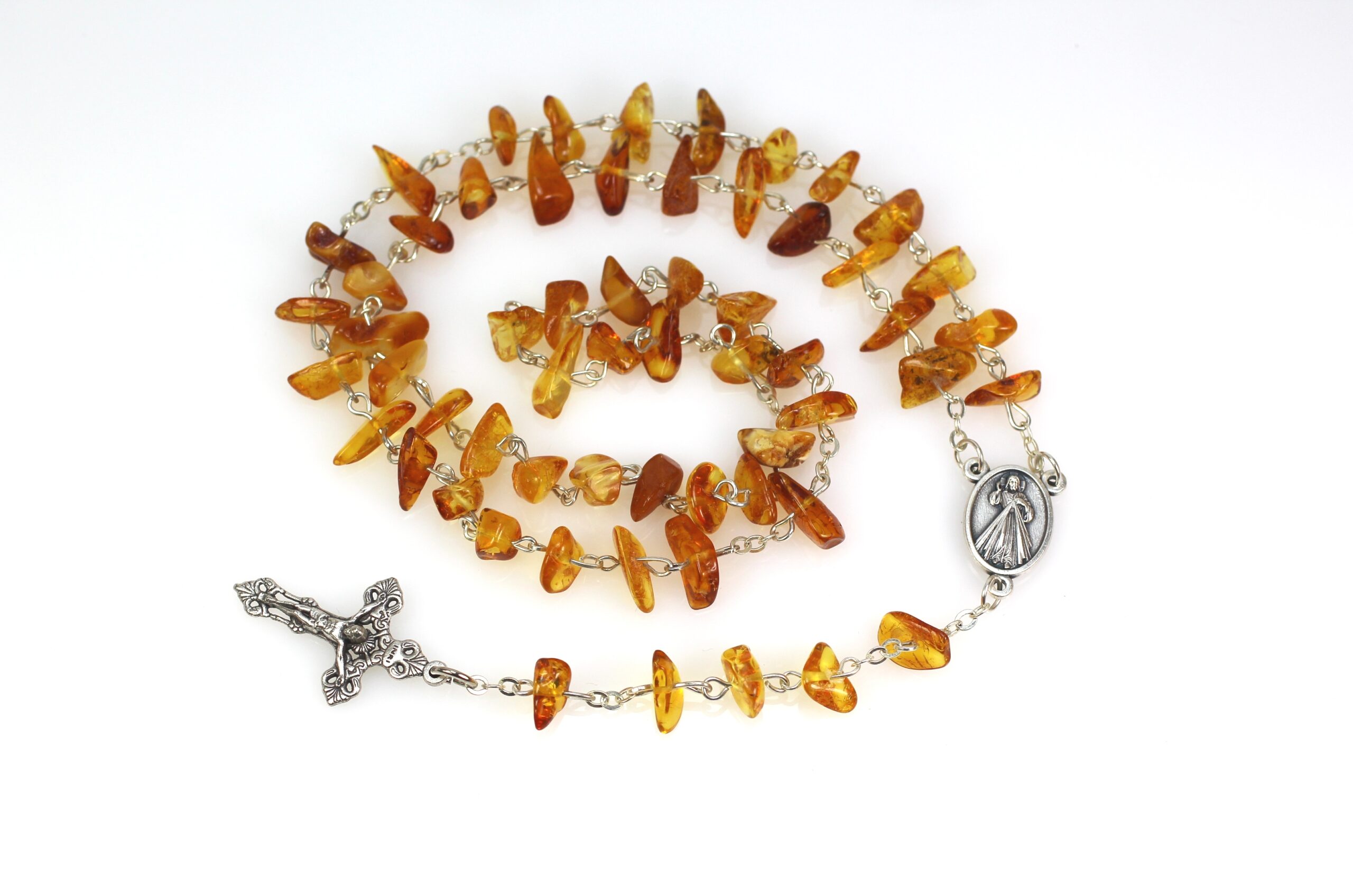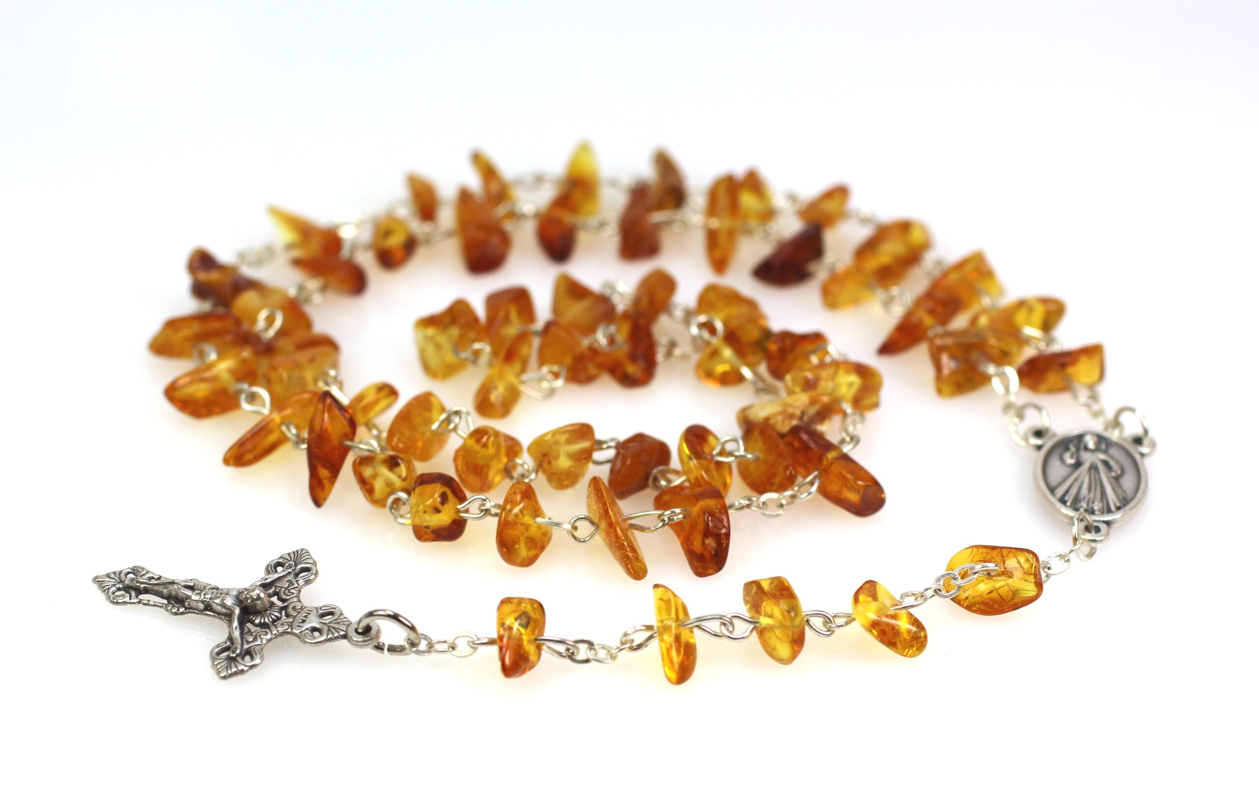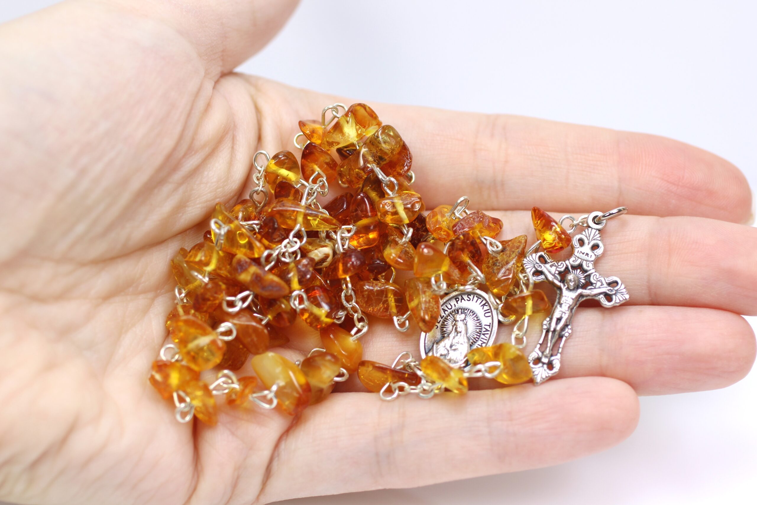 - Tai natūralaus, aukštos kokybės, gintarinis rožančius. Geltonos ir šviesiai rudos Baltijos gintaro spalvų. Visos metalinės detalės iš nerūdijančio plieno. Gintaro rožančius puiki dovana krikštynų, pirmosios Komunijos ar kitoms progomis.
