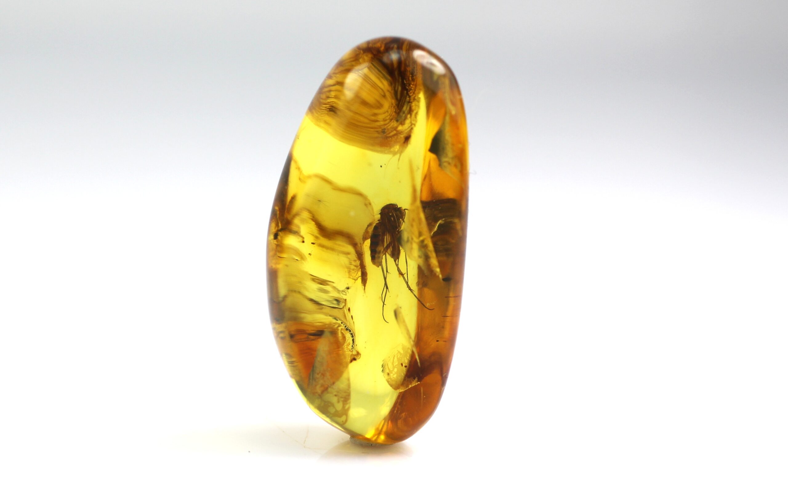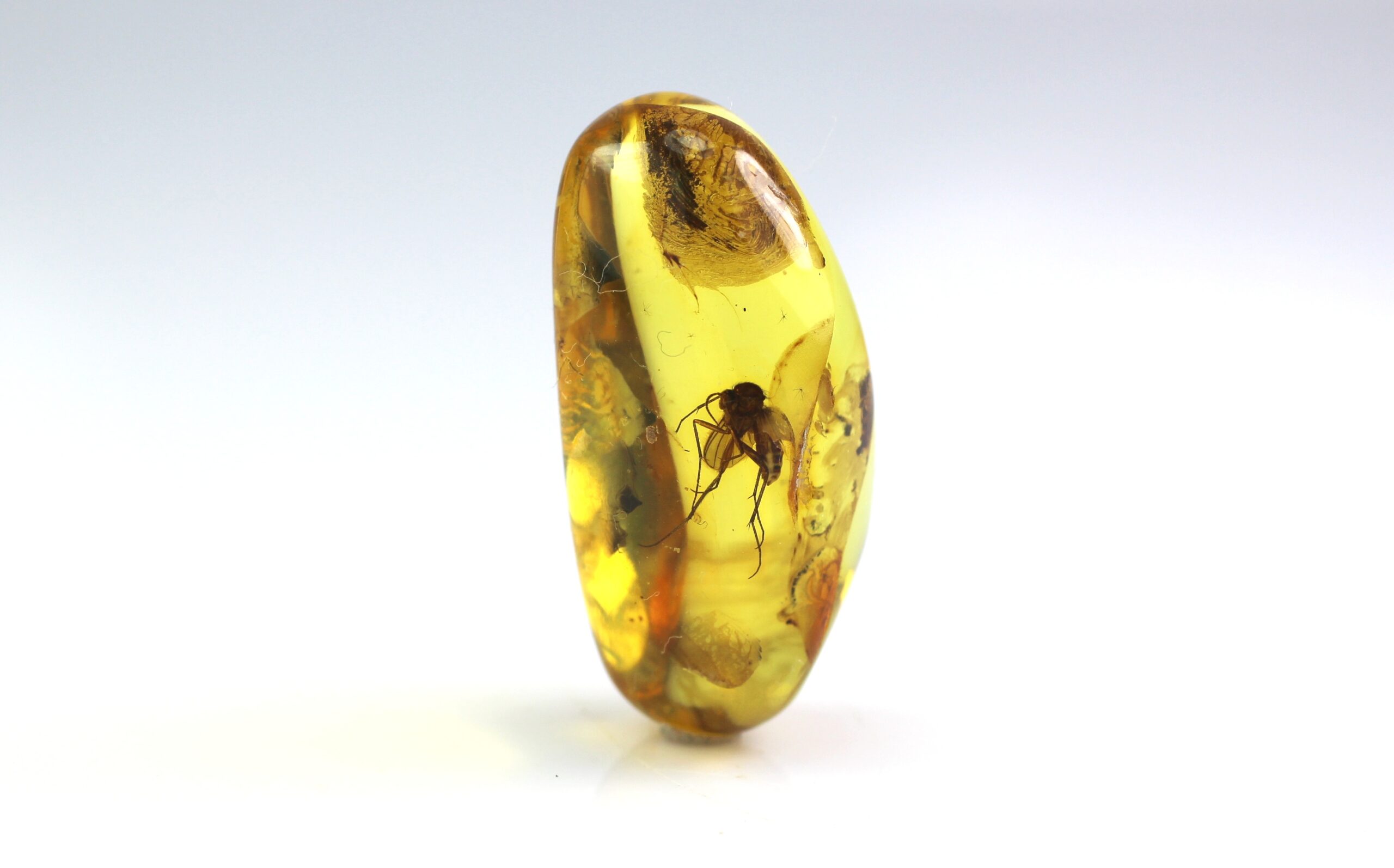 • Tai natūraliai gintaro gabale įstrigęs didelio uodo inkliuzas. Uodas didelis ir gan gerai matomas. Pats gabaliukas skaidrus, pailgos formos.