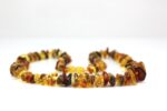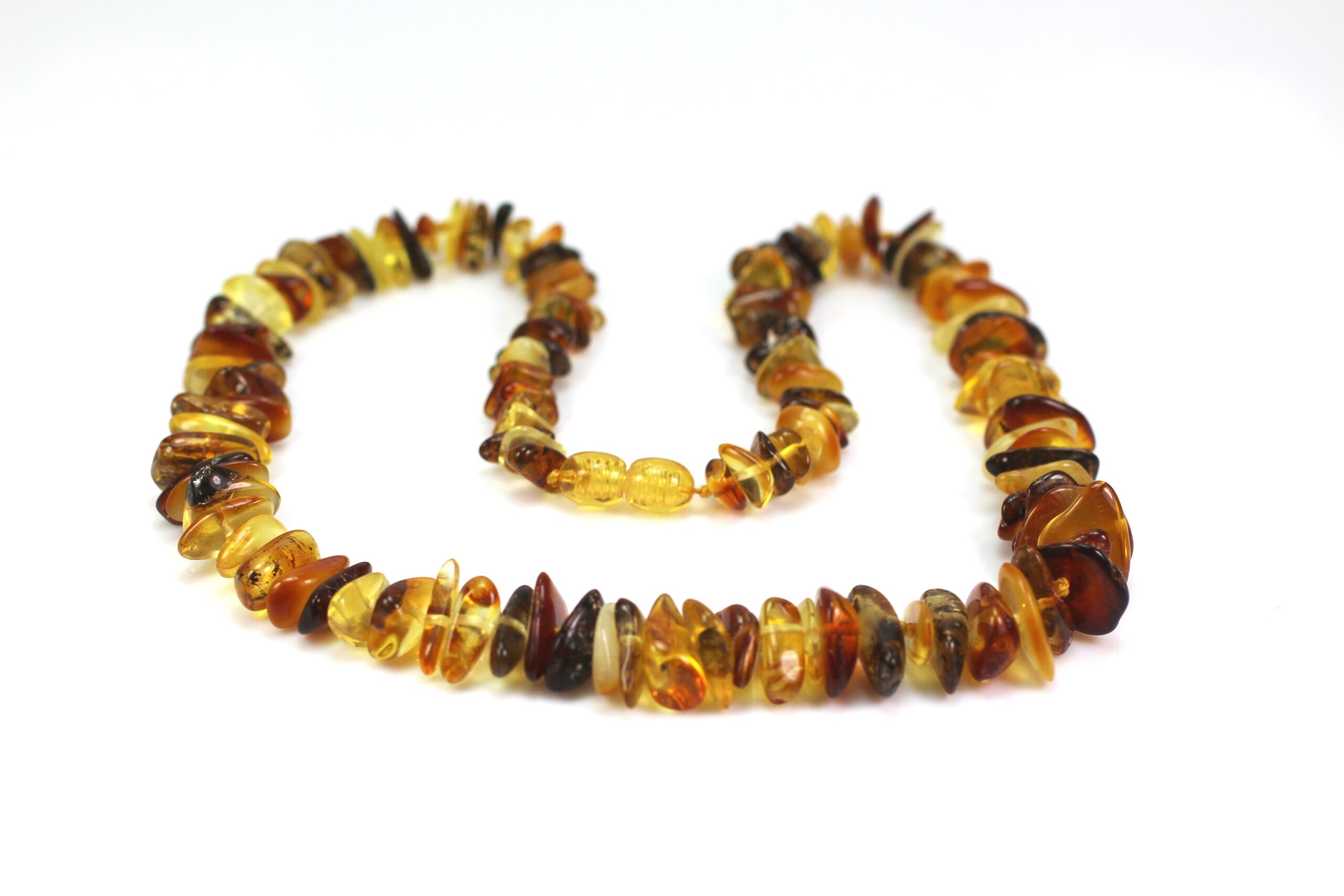 Gydomieji gintaro karoliai pagaminti iš natūralaus Baltijos gintaro. Gintaro gabaliukai kelių skirtingų gintaro spalvų.Gydomieji gintaro karoliai pagaminti iš mažai apdirbtų, poliruotų gintaro gabaliukų. Gintariukai lengvai poliruoti, sugręžti ir suverti ant specialaus, labai tvirto šilkinio siūlo.