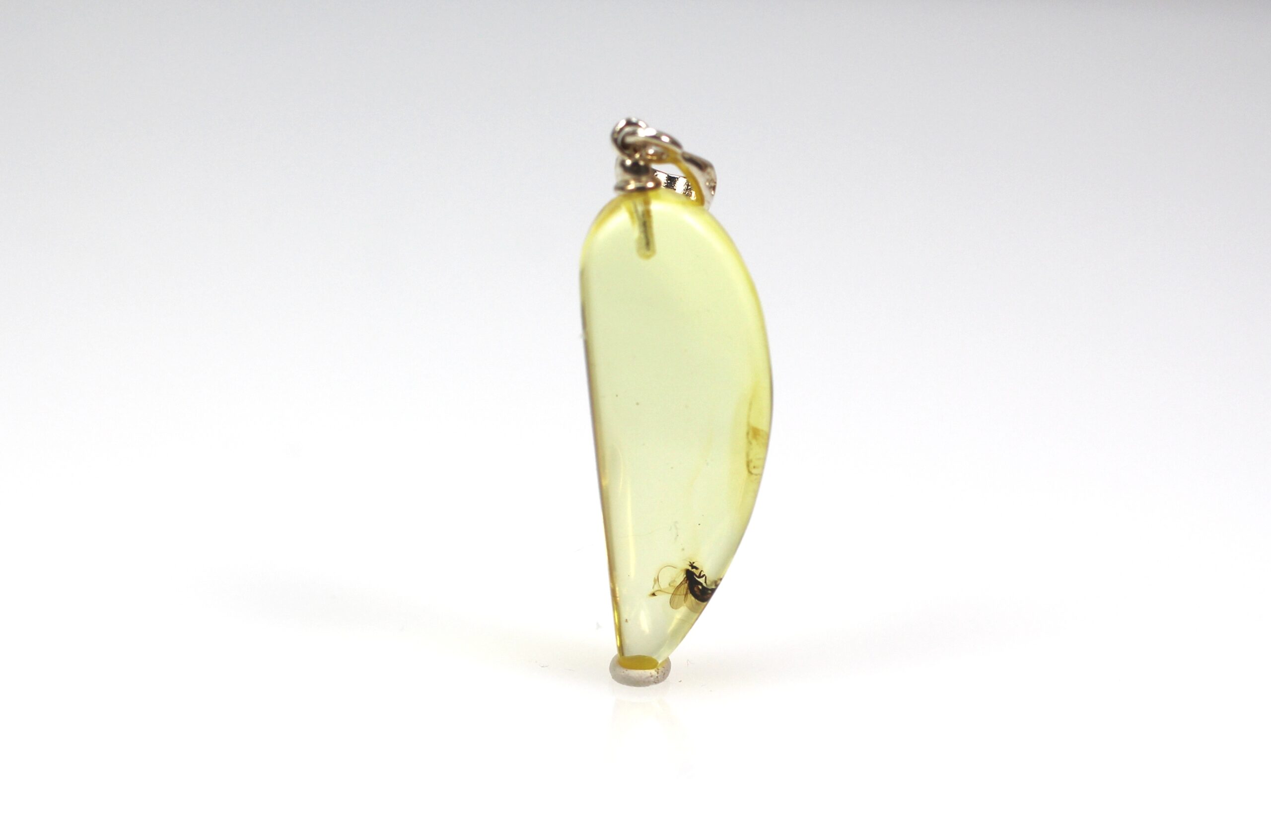 - Ilties formos gintarinis pakabukas pagamintas iš natūralaus Baltijos gintaro su musės inkliuzu. Pats pakabukas skaidrus, inkliuzas labai gerai matosi. Gintaro gabaliukas ilties formos.