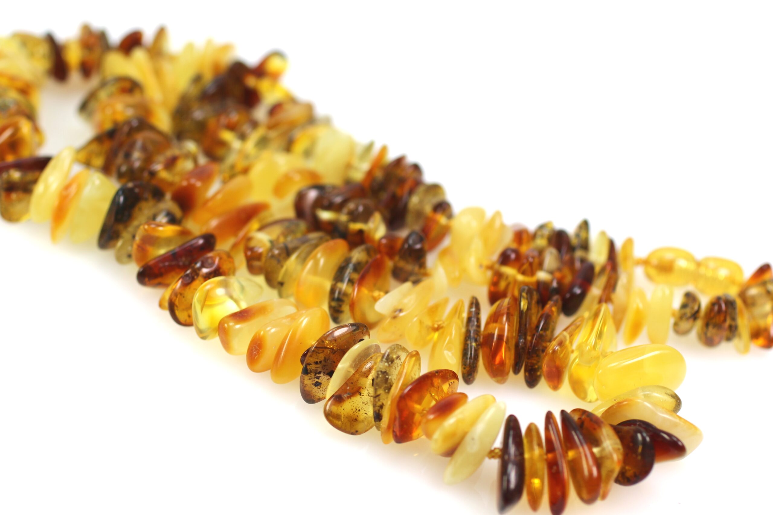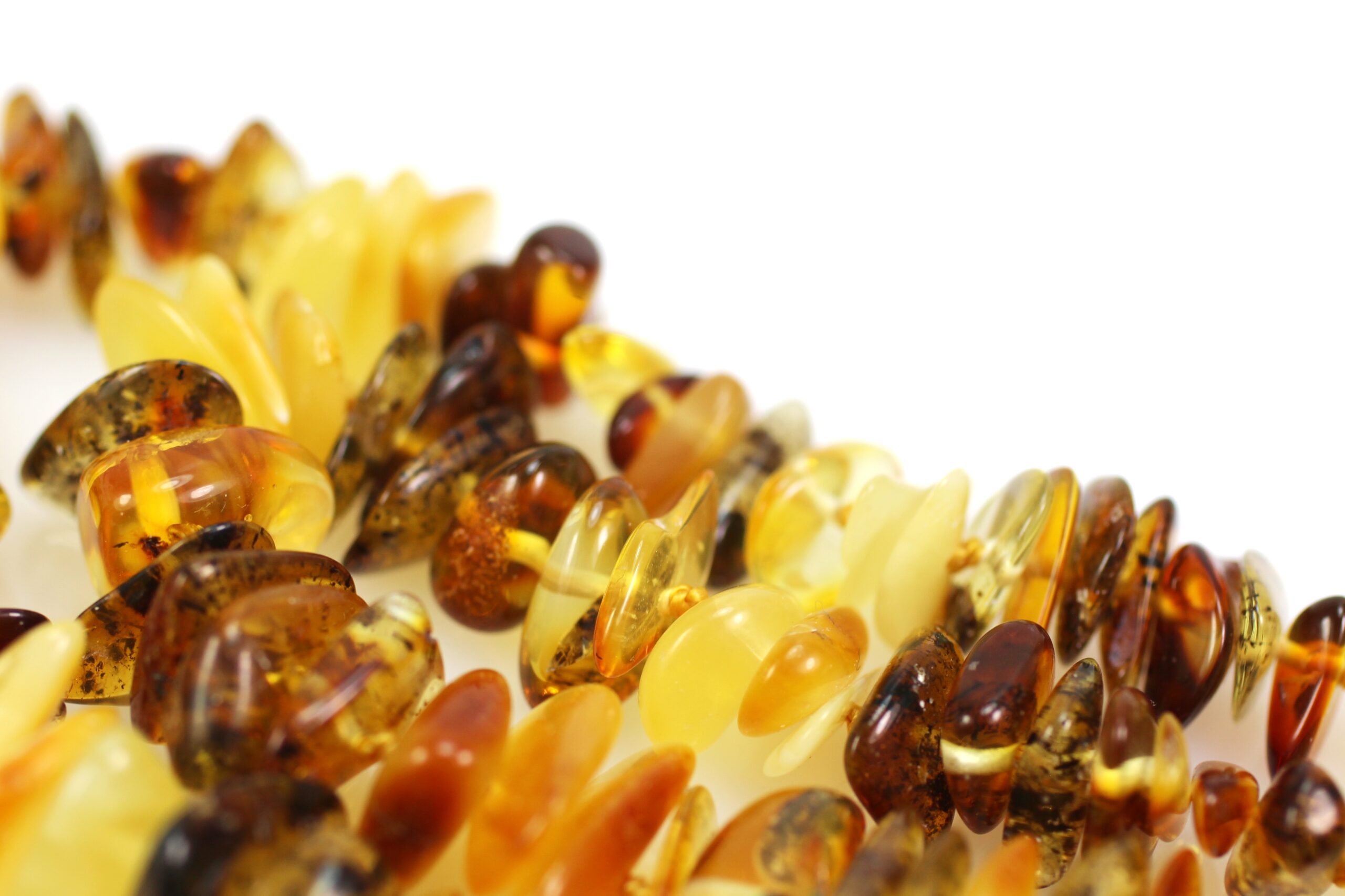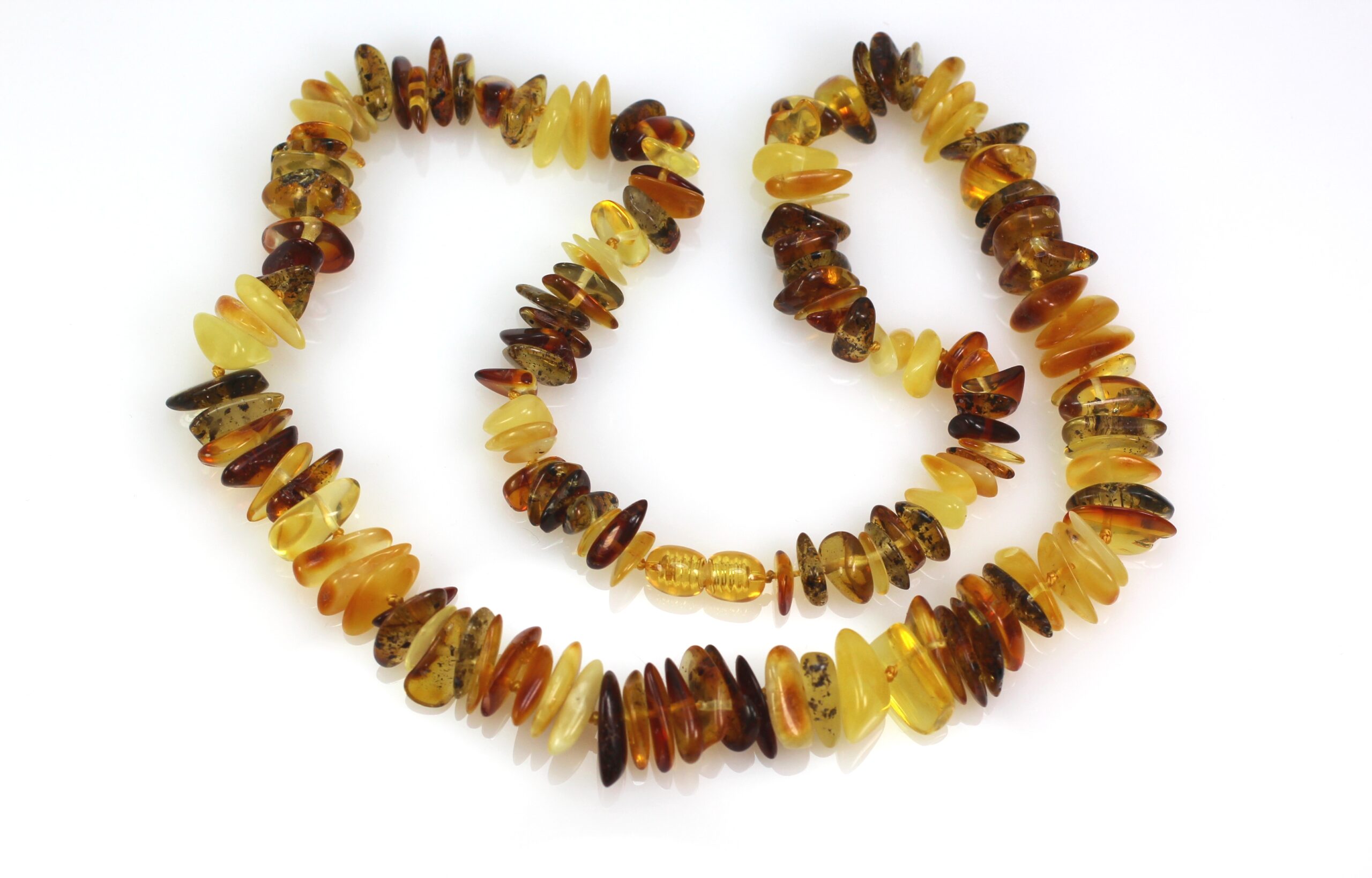 Mažai apdirbto gintaro karoliai, stambesni