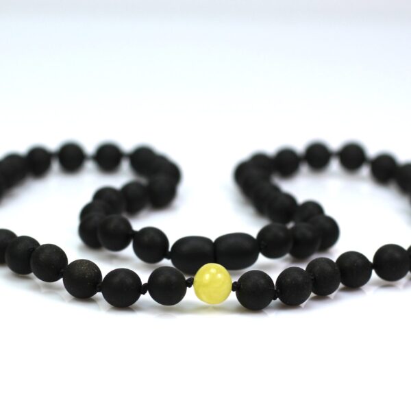 Juodo gintaro karoliai vaikams/paaugliams su vienu geltonu gintariuku (ilgesni)