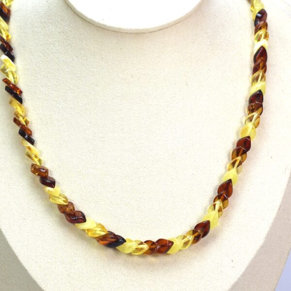 Gintariniai karoliai iš spalvotų gintaro lapelių