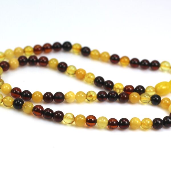Gintariniai karoliai iš spalvotų gintaro rutuliukų