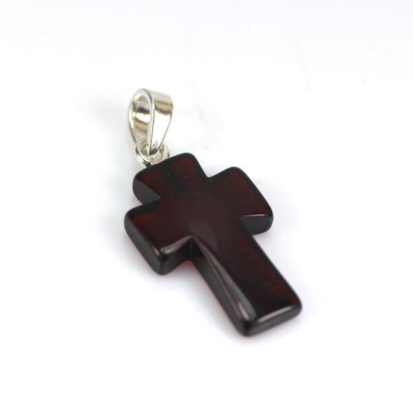 Gintarinis pakabukas juodas kryželis didesnio dydžio
